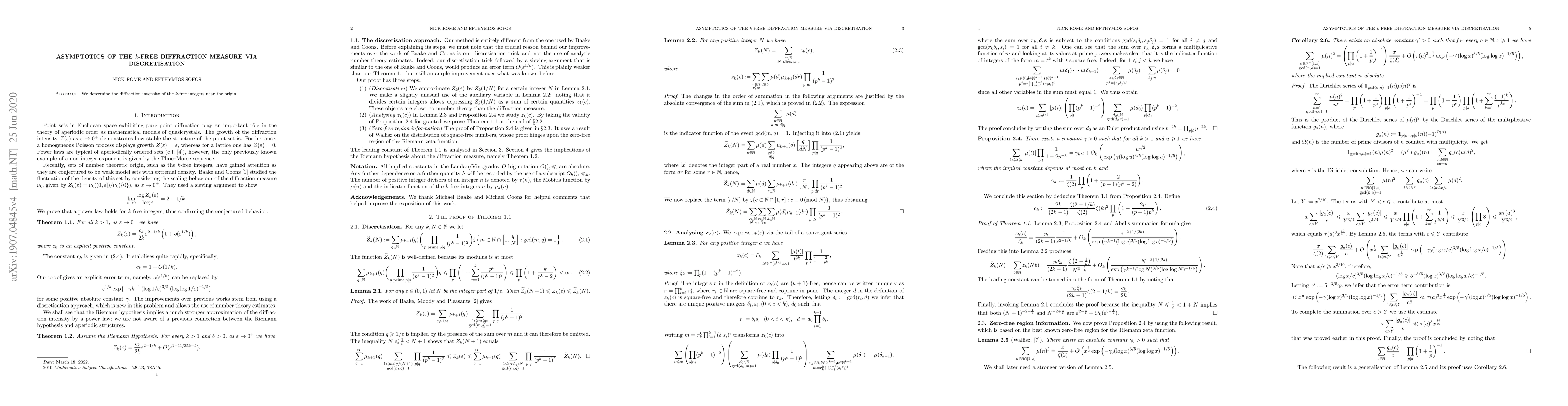 We determine the diffraction intensity of the $k$-free integers near the origin.