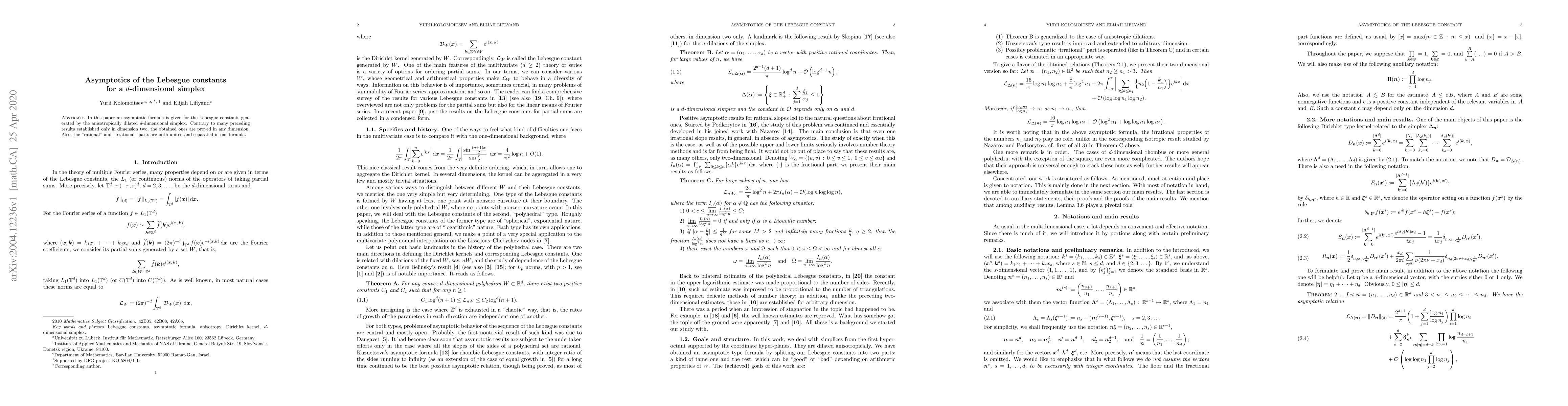 In this paper an asymptotic formula is given for the Lebesgue constants generated by the anisotropically dilated $d$-dimensional simplex. Contrary to many preceding results established only in dimension two, the obtained ones are proved in any dimension. Also, the "rational" and "irrational" parts are both united and separated in one formula.