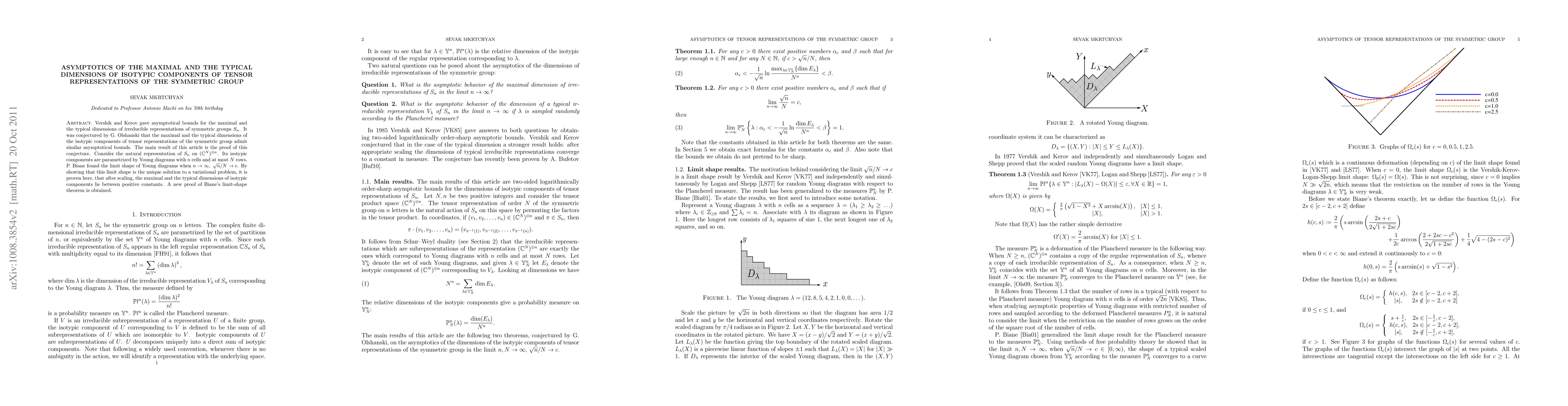 Vershik and Kerov gave asymptotical bounds for the maximal and the typical dimensions of irreducible representations of symmetric groups $S_n$. It was conjectured by G. Olshanski that the maximal and the typical dimensions of the isotypic components of tensor representations of the symmetric group admit similar asymptotical bounds. The main result of this article is the proof of this conjecture. Consider the natural representation of $S_n$ on $(\mathbb{C}^N)^{\otimes n}$. Its isotypic components are parametrized by Young diagrams with $n$ cells and at most $N$ rows. P. Biane found the limit shape of Young diagrams when $n\rightarrow\infty,\ \sqrt{n}/N\rightarrow c$. By showing that this limit shape is the unique solution to a variational problem, it is proven here, that after scaling, the maximal and the typical dimensions of isotypic components lie between positive constants. A new proof of Biane's limit-shape theorem is obtained.