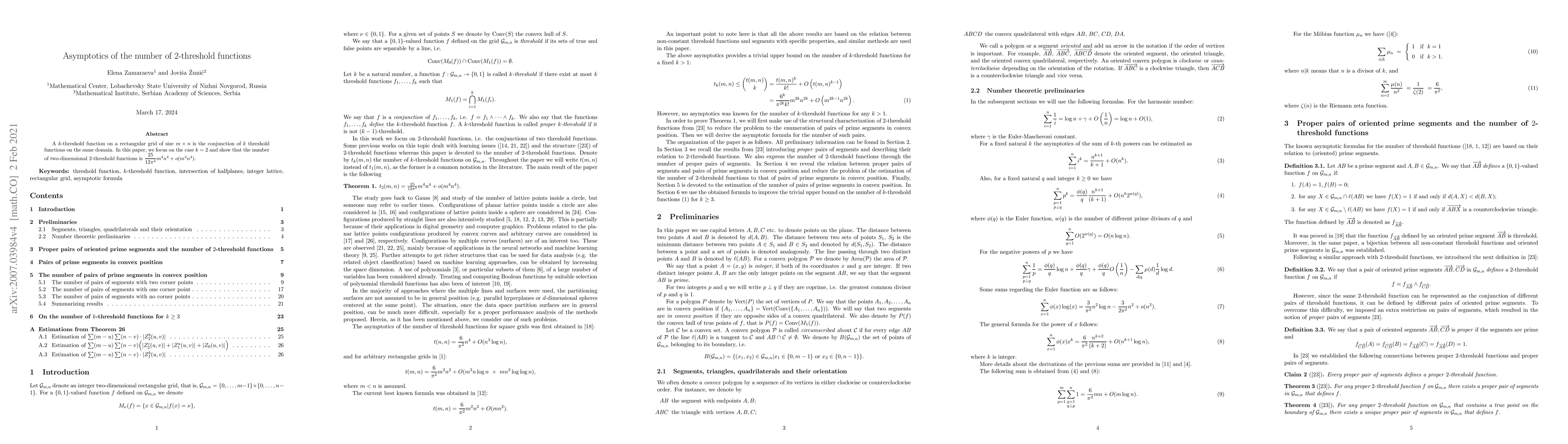 The paper estimates the number of 2-threshold functions on a rectangular grid to be approximately $rac{25}{12 ext{·}4}$ times $m^4n^4$, with the actual count being slightly higher.