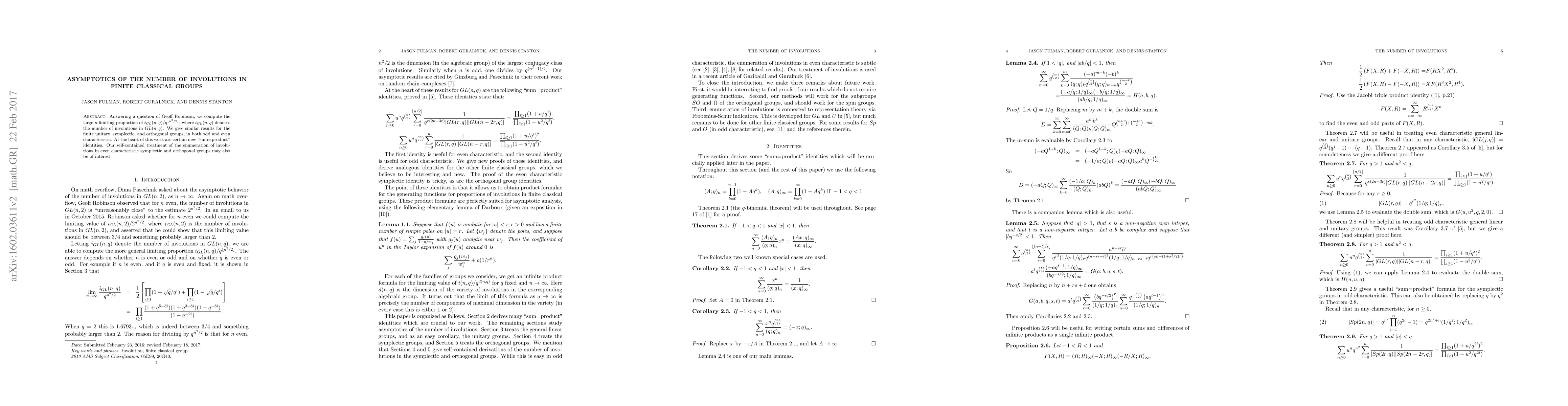 This paper computes the large n limiting proportion of involutions in various finite classical groups, addressing a question by Geoff Robinson, and provides new "sum=product" identities central to these calculations. The study also includes a self-contained enumeration of involutions in even characteristic symplectic and orthogonal groups.