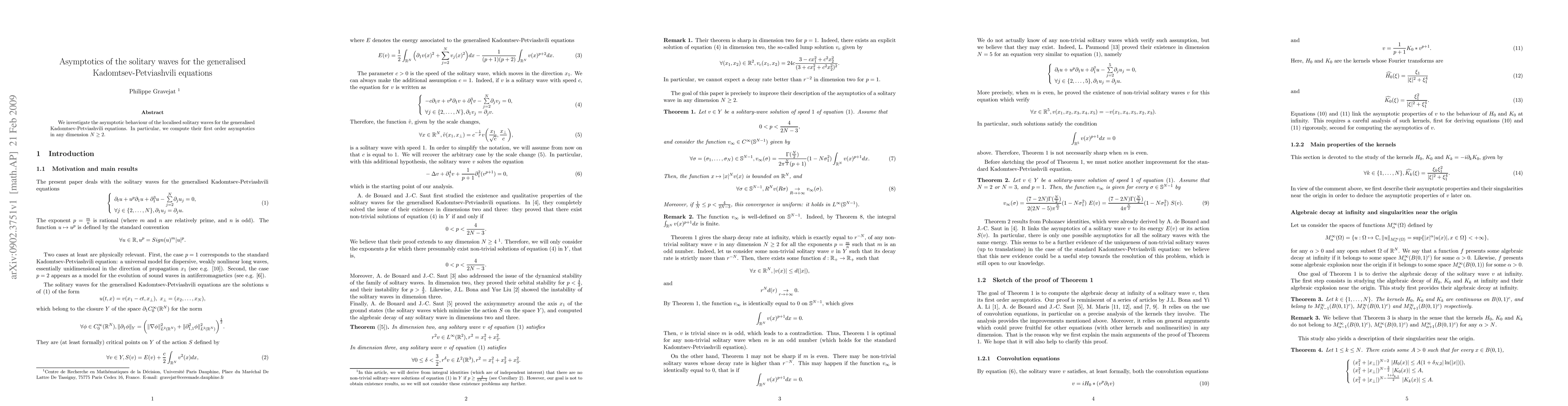 We investigate the asymptotic behaviour of the localised solitary waves for the generalised Kadomtsev-Petviashvili equations. In particular, we compute their first order asymptotics in any dimension $N \geq 2$.