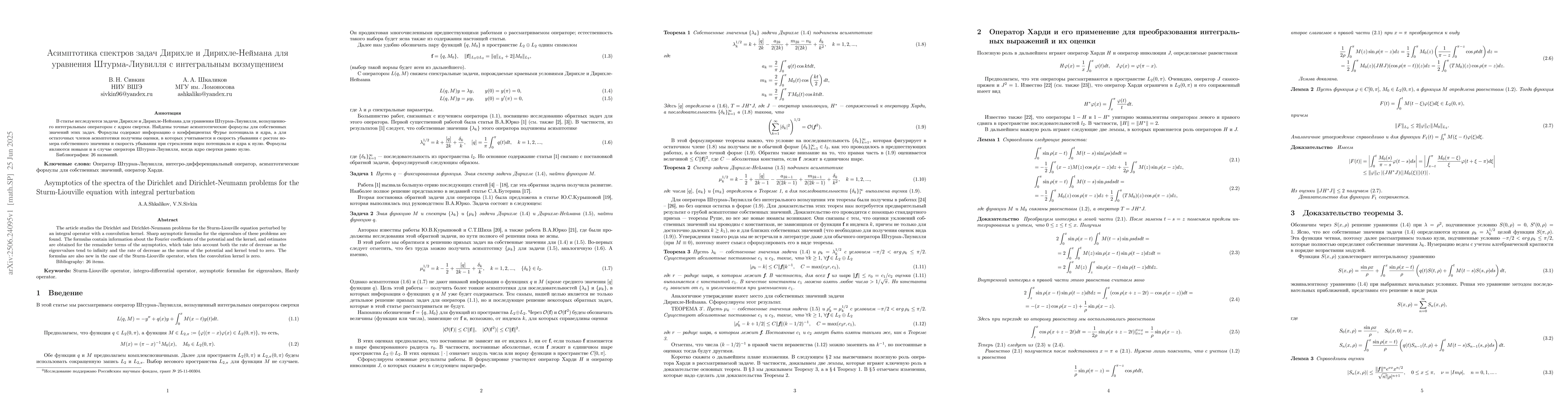 The article studies the Dirichlet and Dirichlet-Neumann problems for the Sturm-Liouville equation perturbed by an integral operator with a convolution kernel. Sharp asymptotic formulas for the eigenvalues of these problems are found. The formulas contain information about the Fourier coefficients of the potential and the kernel, and estimates are obtained for the remainder terms of the asymptotics, which take into account both the rate of decrease as the eigenvvalues tend to infinity and the rate of decrease as the norms of the potential and kernel tend to zero. The formulas are also new in the case of the Sturm-Liouville operator, when the convolution kernel is zero.