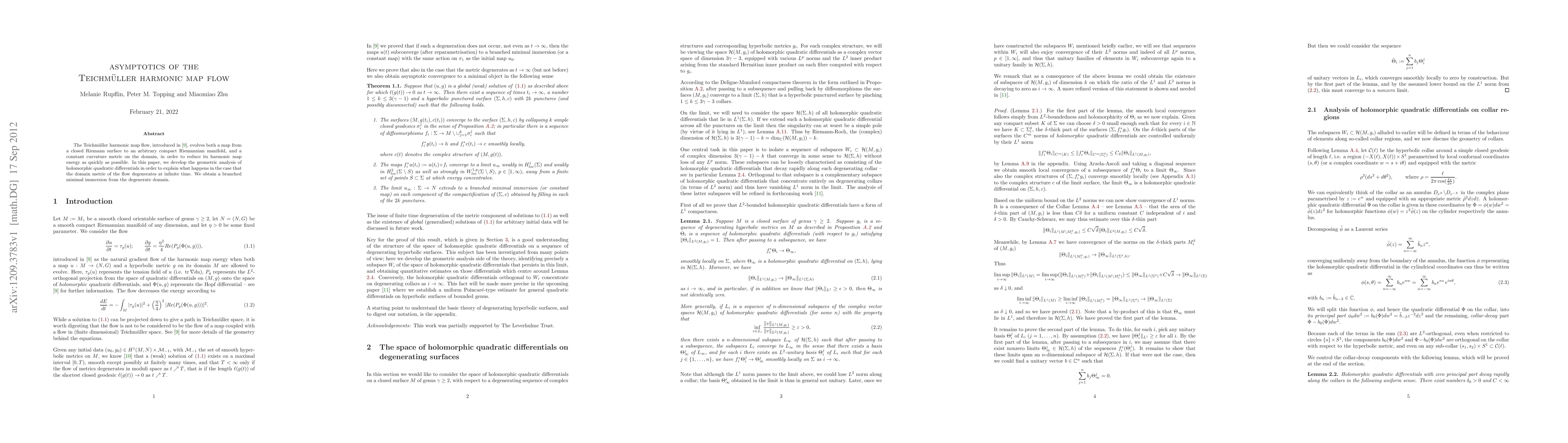 The Teichm\"uller harmonic map flow, introduced in [9], evolves both a map from a closed Riemann surface to an arbitrary compact Riemannian manifold, and a constant curvature metric on the domain, in order to reduce its harmonic map energy as quickly as possible. In this paper, we develop the geometric analysis of holomorphic quadratic differentials in order to explain what happens in the case that the domain metric of the flow degenerates at infinite time. We obtain a branched minimal immersion from the degenerate domain.
