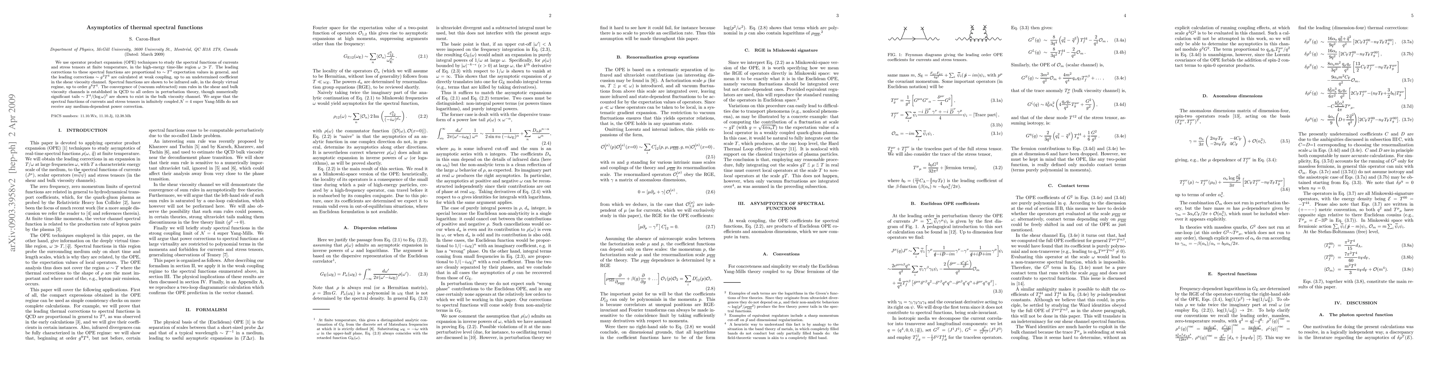 Researchers used operator product expansion to study thermal spectral functions of currents and stress tensors at high-energy temperatures, finding that their leading corrections are proportional to $T^4$ expectation values or $g^2T^4$ at weak coupling. The convergence of sum rules for viscosity channels is established in QCD to all orders.