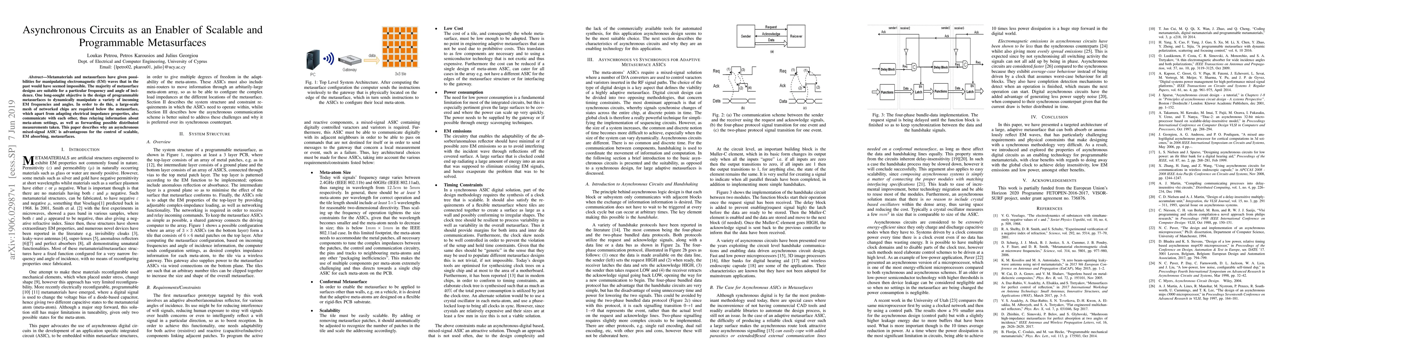 This paper explores the use of asynchronous mixed-signal ASICs to enable scalable and programmable metasurfaces capable of dynamically manipulating electromagnetic waves across various frequencies and angles. It highlights the benefits of such asynchronous circuits in managing a large-scale mesh of networked chips beneath the metasurface for adaptive impedance and inter-chip communication.
