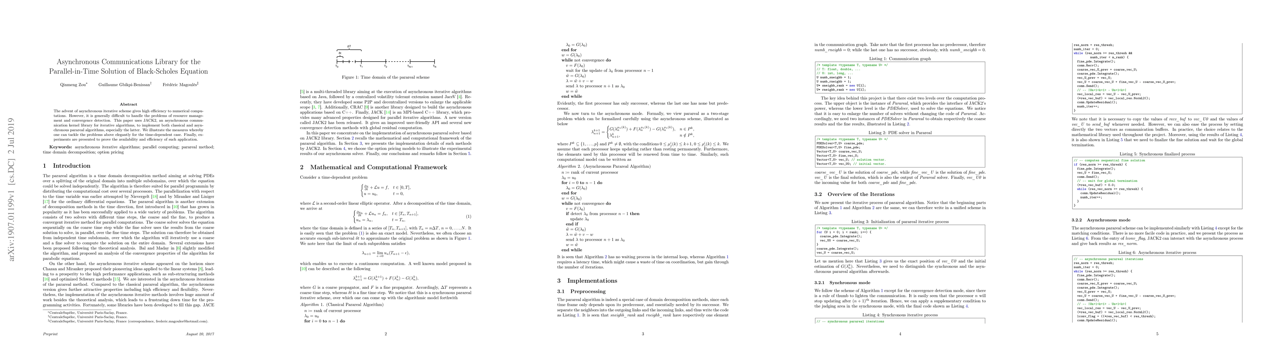 The advent of asynchronous iterative scheme gives high efficiency to numerical computations. However, it is generally difficult to handle the problems of resource management and convergence detection. This paper uses JACK2, an asynchronous communication kernel library for iterative algorithms, to implement both classical and asynchronous parareal algorithms, especially the latter. We illustrate the measures whereby one can tackle the problems above elegantly for the time-dependent case. Finally, experiments are presented to prove the availability and efficiency of such application.
