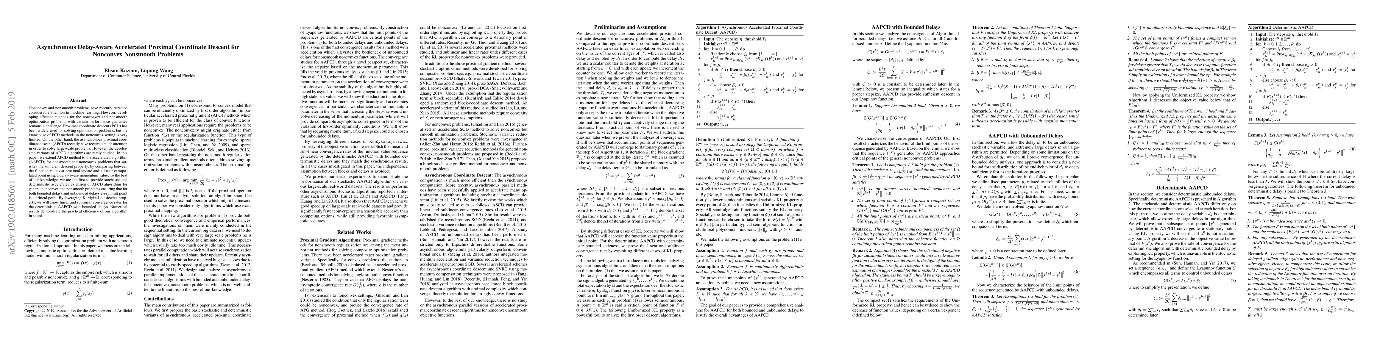 This paper proposes an accelerated asynchronous proximal coordinate descent (AAPCD) algorithm for solving nonconvex and nonsmooth optimization problems. It ensures sufficient descent and convergence properties under bounded and unbounded delays, providing both stochastic and deterministic variants with linear and sublinear convergence rates.