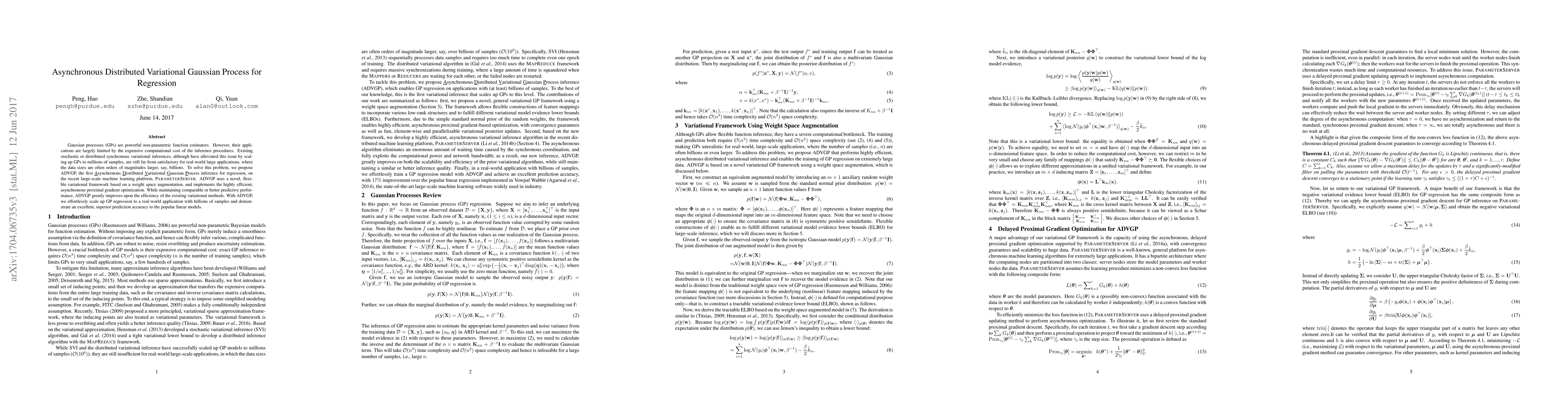 This paper introduces ADVGP, an asynchronous distributed variational Gaussian Process for regression, designed to efficiently scale up to billions of data samples. It employs a flexible variational framework and asynchronous optimization to achieve superior predictive performance and scalability compared to existing methods.