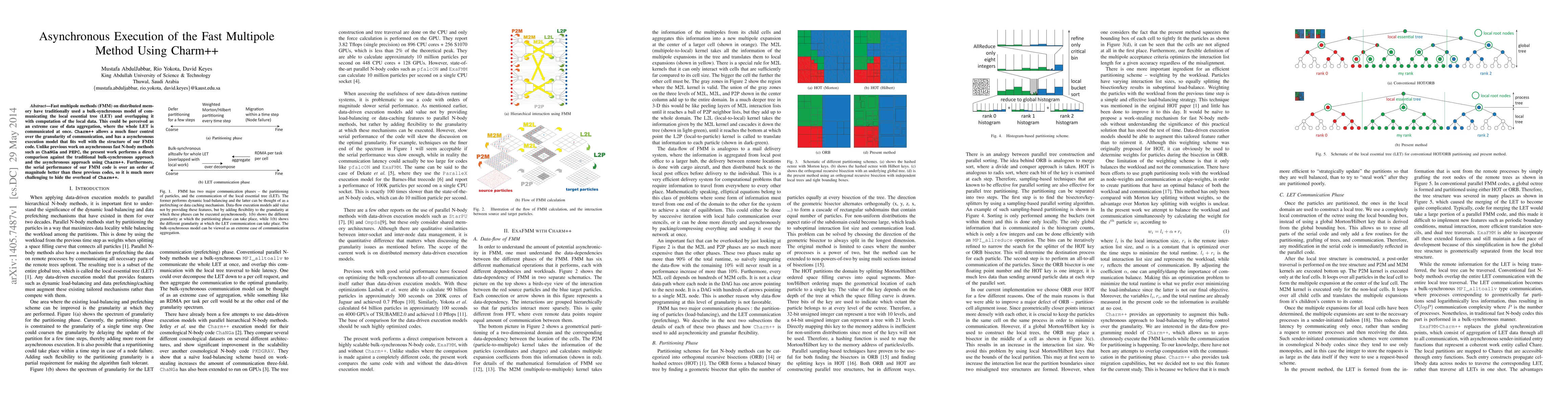 Fast multipole methods (FMM) on distributed mem- ory have traditionally used a bulk-synchronous model of com- municating the local essential tree (LET) and overlapping it with computation of the local data. This could be perceived as an extreme case of data aggregation, where the whole LET is communicated at once. Charm++ allows a much finer control over the granularity of communication, and has a asynchronous execution model that fits well with the structure of our FMM code. Unlike previous work on asynchronous fast N-body methods such as ChaNGa and PEPC, the present work performs a direct comparison against the traditional bulk-synchronous approach and the asynchronous approach using Charm++. Furthermore, the serial performance of our FMM code is over an order of magnitude better than these previous codes, so it is much more challenging to hide the overhead of Charm++.