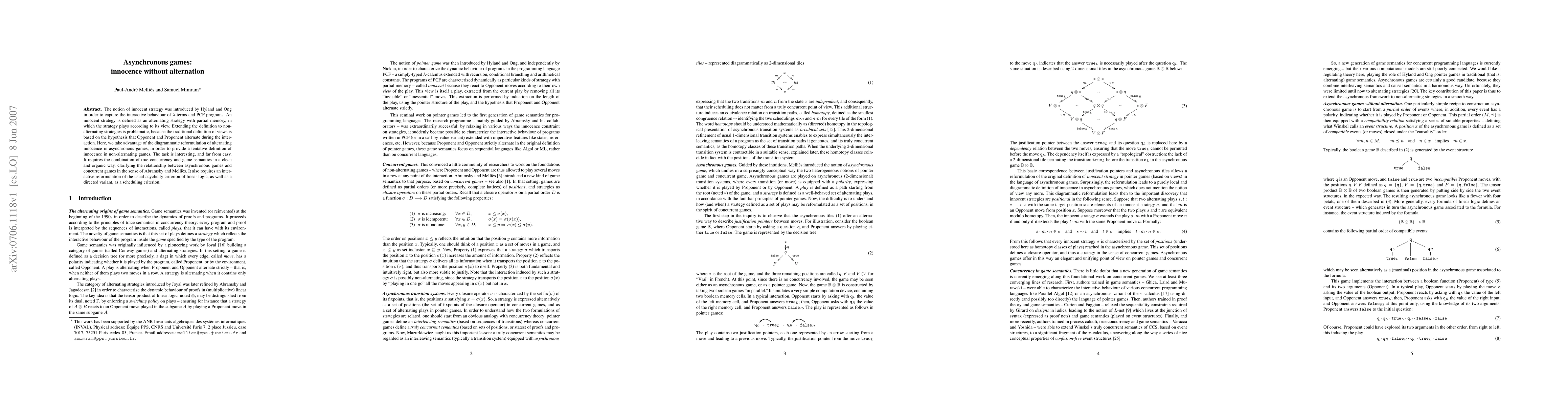 This paper explores extending the concept of innocent strategies from alternating to non-alternating asynchronous games, proposing a new definition based on diagrammatic reformulation and concurrent game semantics. It aims to clarify the relationship between asynchronous and concurrent games while introducing a directed scheduling criterion for linear logic.
