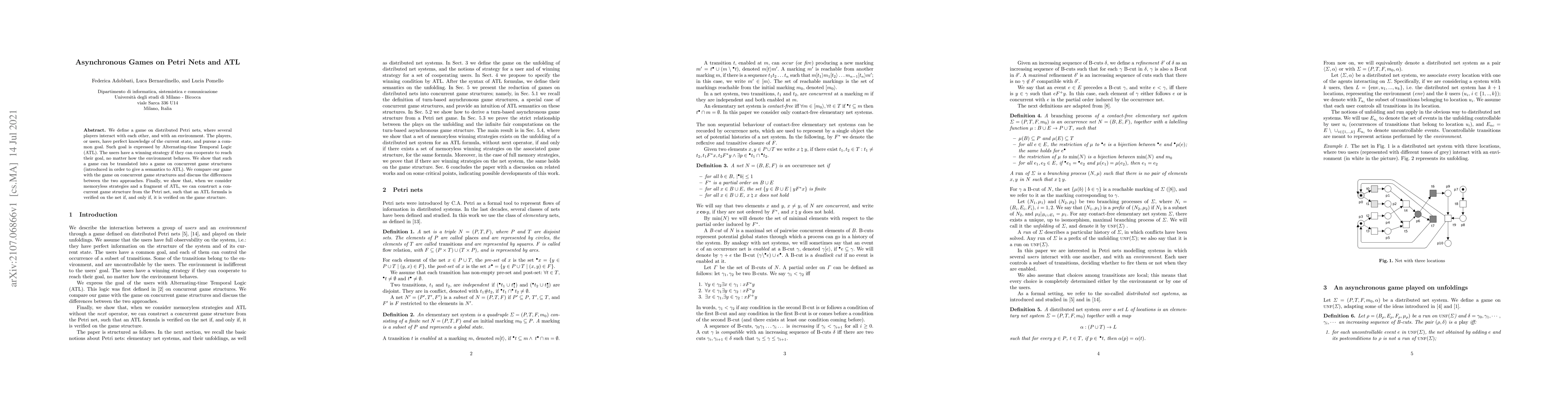 We define a game on distributed Petri nets, where several players interact with each other, and with an environment. The players, or users, have perfect knowledge of the current state, and pursue a common goal. Such goal is expressed by Alternating-time Temporal Logic (ATL). The users have a winning strategy if they can cooperate to reach their goal, no matter how the environment behaves. We show that such a game can be translated into a game on concurrent game structures (introduced in order to give a semantics to ATL). We compare our game with the game on concurrent game structures and discuss the differences between the two approaches. Finally, we show that, when we consider memoryless strategies and a fragment of ATL, we can construct a concurrent game structure from the Petri net, such that an ATL formula is verified on the net if, and only if, it is verified on the game structure.