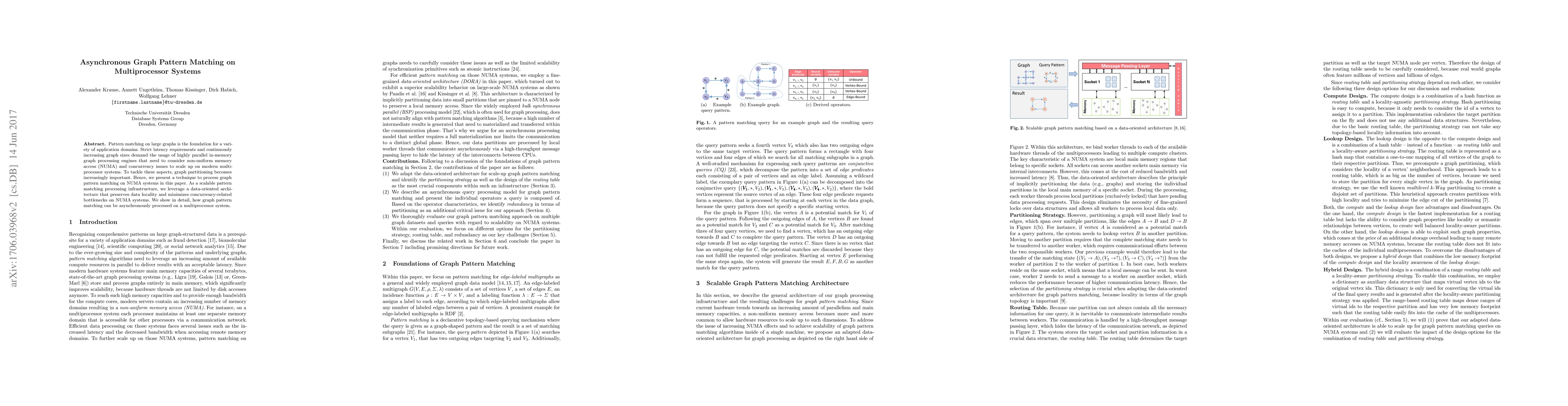This paper presents an asynchronous technique for graph pattern matching on NUMA systems using a data-oriented architecture to enhance scalability and minimize concurrency bottlenecks, addressing the challenges of large-scale graph processing on multiprocessor systems. The proposed method leverages graph partitioning to optimize data locality and performance.