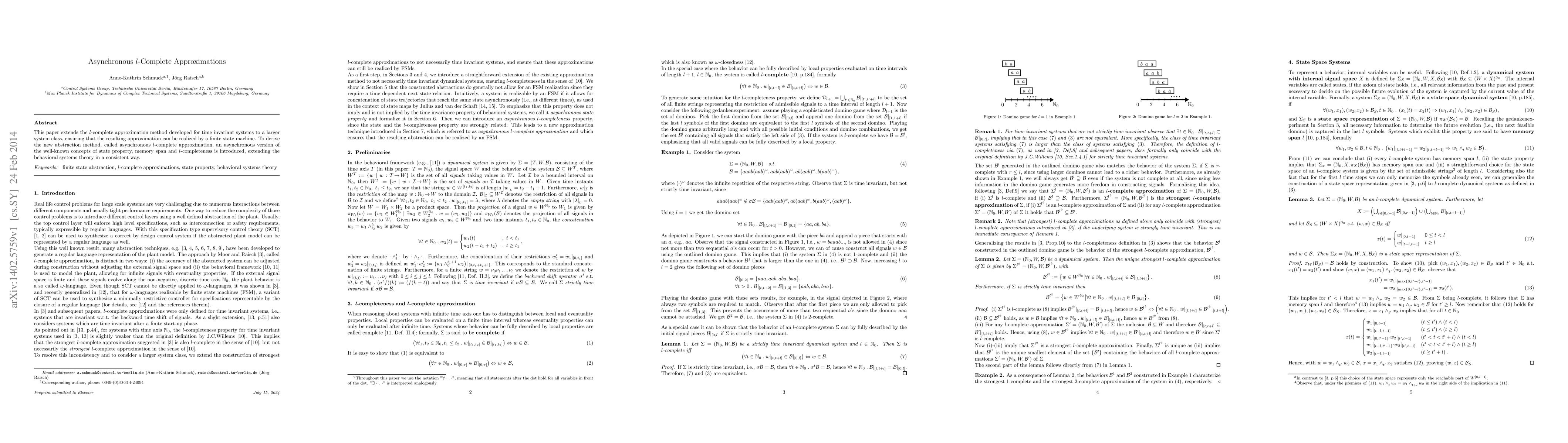 This paper extends the $l$-complete approximation method developed for time invariant systems to a larger system class, ensuring that the resulting approximation can be realized by a finite state machine. To derive the new abstraction method, called asynchronous $l$-complete approximation, an asynchronous version of the well-known concepts of state property, memory span and $l$-completeness is introduced, extending the behavioral systems theory in a consistent way.