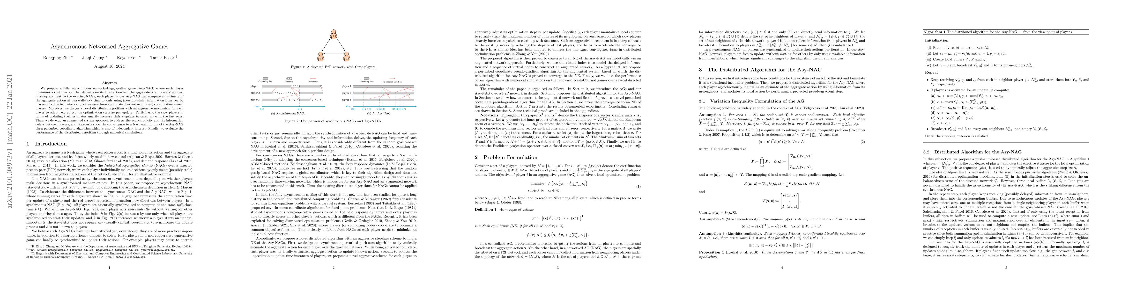 Researchers propose an asynchronous networked game model where players minimize a cost function based on their local action and aggregate actions of others. They develop a distributed algorithm that adapts to player speeds, ensuring convergence to a Nash equilibrium.