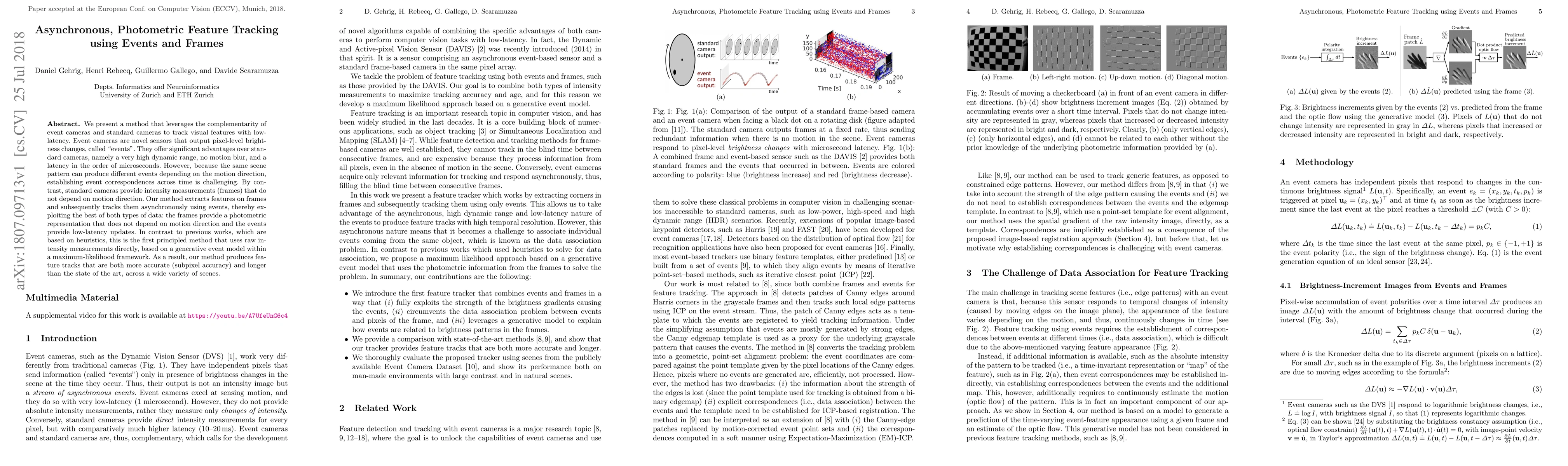 This paper introduces a method combining event cameras and standard cameras for low-latency feature tracking, leveraging the high dynamic range and microsecond latency of events with the motion-direction-independent photometric representation of frames. The proposed generative model within a maximum-likelihood framework achieves more accurate and longer feature tracks than previous heuristic-based methods.