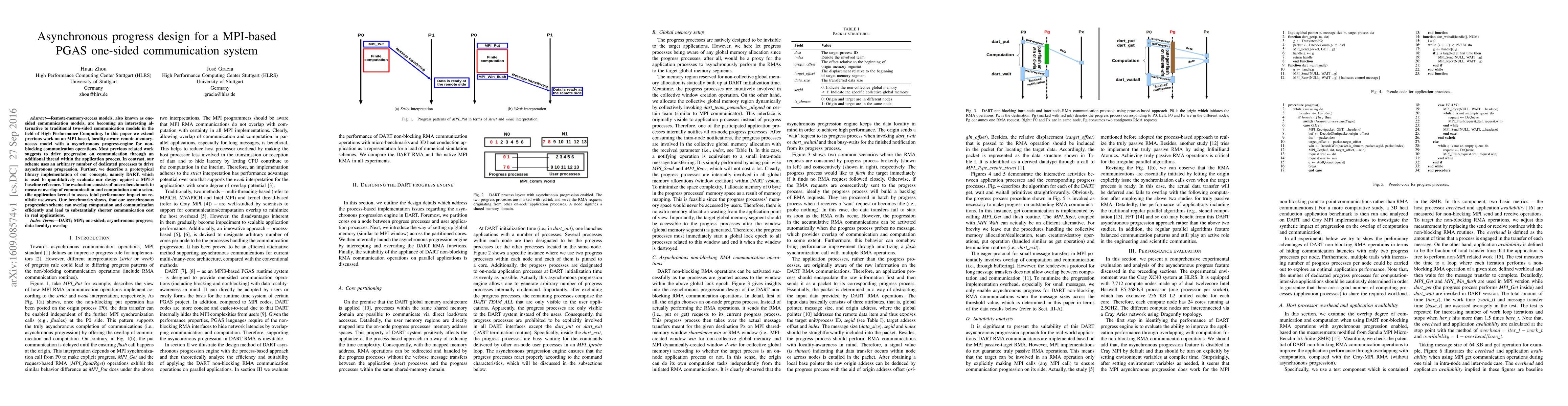 This paper proposes an asynchronous progress design for an MPI-based PGAS one-sided communication system using dedicated processes for non-blocking communication, contrasting with traditional methods. The DART library implementation demonstrates efficient overlap of communication and computation, leading to reduced communication costs in real applications.