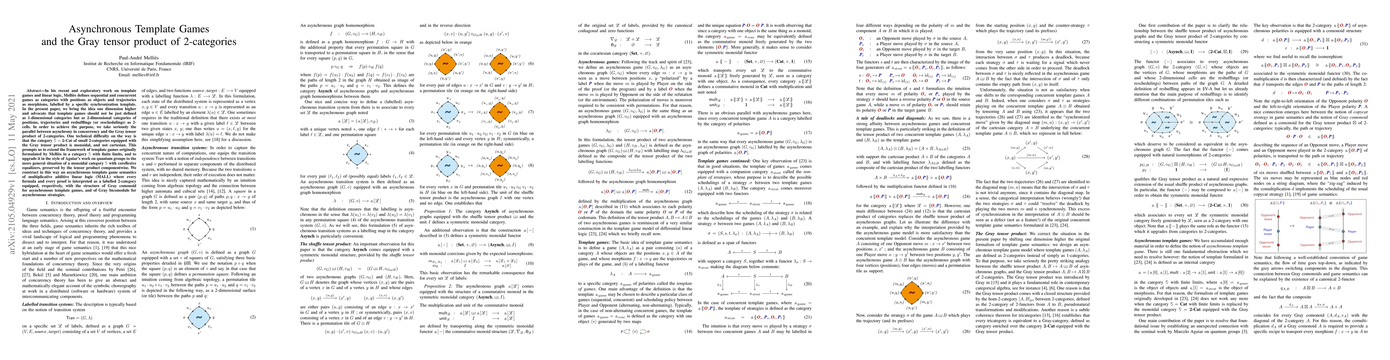 In his recent and exploratory work on template games and linear logic, Melli\`es defines sequential and concurrent games as categories with positions as objects and trajectories as morphisms, labelled by a specific synchronization template. In the present paper, we bring the idea one dimension higher and advocate that template games should not be just defined as 1-dimensional categories but as 2-dimensional categories of positions, trajectories and reshufflings (or reschedulings) as 2-cells. In order to achieve the purpose, we take seriously the parallel between asynchrony in concurrency and the Gray tensor product of 2-categories. One technical difficulty on the way is that the category S=2-Cat of small 2-categories equipped with the Gray tensor product is monoidal, and not cartesian. This prompts us to extend the framework of template games originally formulated by Melli\`es in a category S with finite limits, and to upgrade it in the style of Aguiar's work on quantum groups to the more general situation of a monoidal category S with coreflexive equalizers, preserved by the tensor product componentwise. We construct in this way an asynchronous template game semantics of multiplicative additive linear logic (MALL) where every formula and every proof is interpreted as a labelled 2-category equipped, respectively, with the structure of Gray comonoid for asynchronous template games, and of Gray bicomodule for asynchronous strategies.