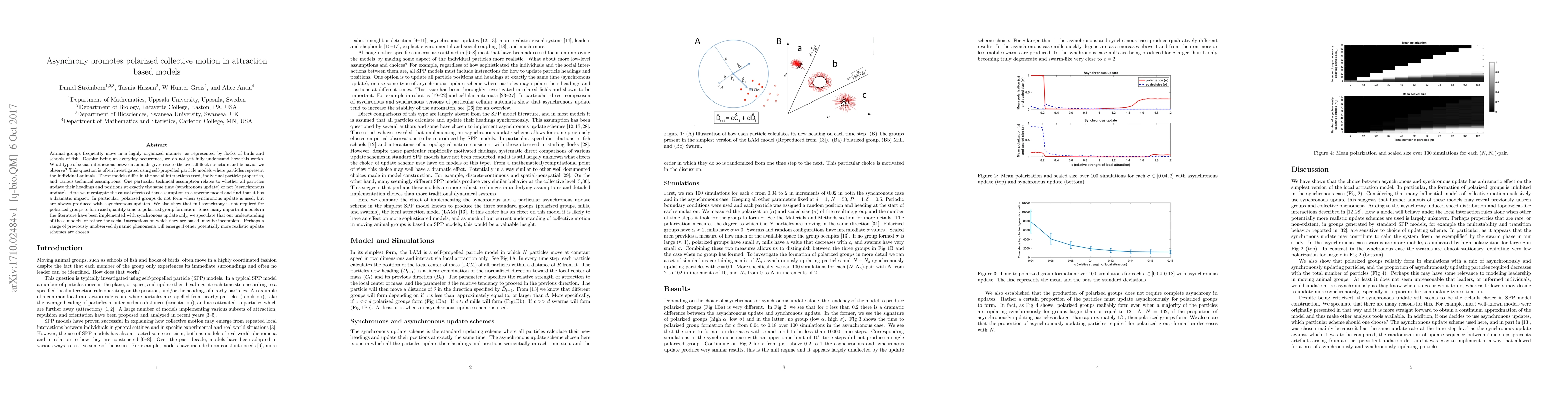 This study investigates how asynchrony in updating particle headings affects collective motion in self-propelled particle models, revealing that asynchrony promotes the formation of polarized groups, while synchronous updates prevent it. The findings suggest that current models may miss dynamic phenomena if they rely solely on synchronous updates.