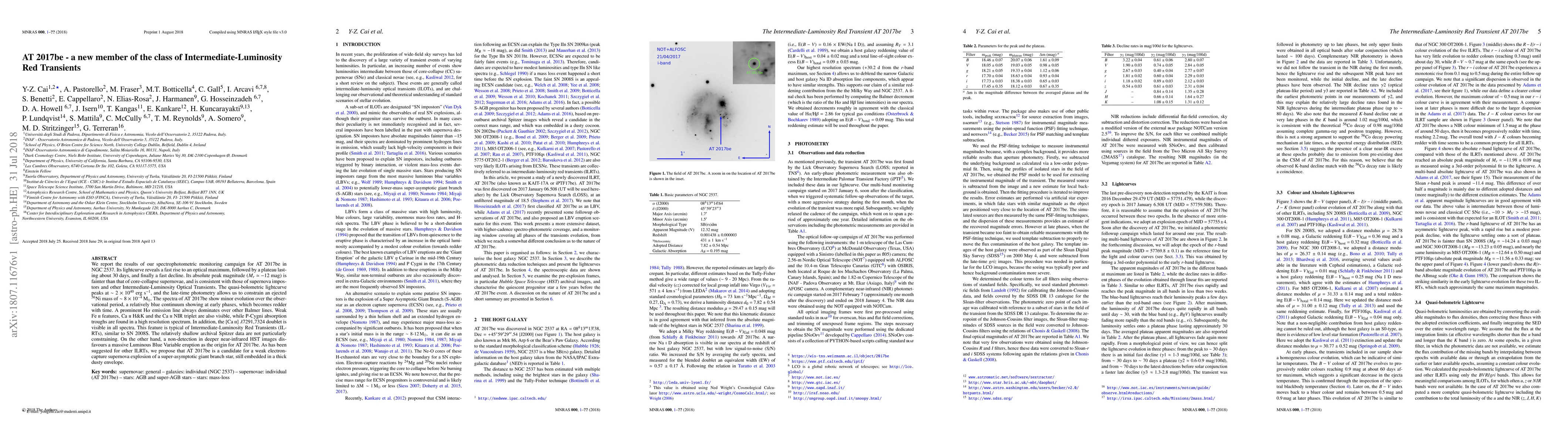 AT 2017be, an Intermediate-Luminosity Red Transient in NGC 2537, exhibits a light curve with a rapid rise, a 30-day plateau, and a swift decline, suggesting a fainter peak than typical supernovae. Spectroscopic analysis indicates a weak electron-capture supernova in a dusty envelope as the likely origin.