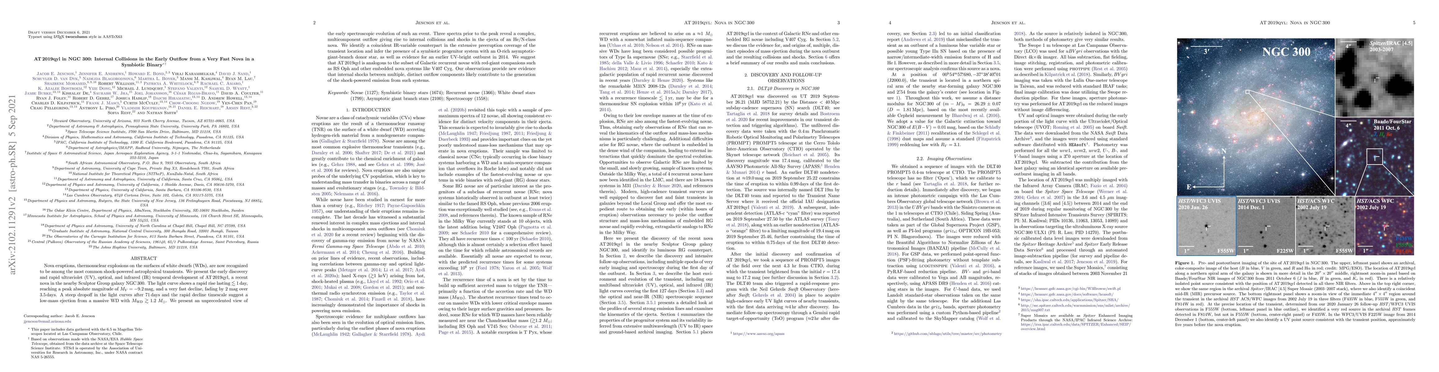 Nova eruptions, thermonuclear explosions on the surfaces of white dwarfs (WDs), are now recognized to be among the most common shock-powered astrophysical transients. We present the early discovery and rapid ultraviolet (UV), optical, and infrared (IR) temporal development of AT 2019qyl, a recent nova in the nearby Sculptor Group galaxy NGC 300. The light curve shows a rapid rise lasting $\lesssim 1$ day, reaching a peak absolute magnitude of $M_V = -9.2$ mag, and a very fast decline, fading by 2 mag over 3.5 days. A steep dropoff in the light curves after 71 days and the rapid decline timescale suggest a low-mass ejection from a massive WD with $M_{\rm WD} \gtrsim 1.2~M_{\odot}$. We present an unprecedented view of the early spectroscopic evolution of such an event. Three spectra prior to the peak reveal a complex, multicomponent outflow giving rise to internal collisions and shocks in the ejecta of an He/N-class nova. We identify a coincident IR-variable counterpart in the extensive preeruption coverage of the transient location and infer the presence of a symbiotic progenitor system with an O-rich asymptotic-giant-branch donor star, as well as evidence for an earlier UV-bright outburst in 2014. We suggest that AT 2019qyl is analogous to the subset of Galactic recurrent novae with red-giant companions such as RS Oph and other embedded nova systems like V407 Cyg. Our observations provide new evidence that internal shocks between multiple, distinct outflow components likely contribute to the generation of the shock-powered emission from such systems.