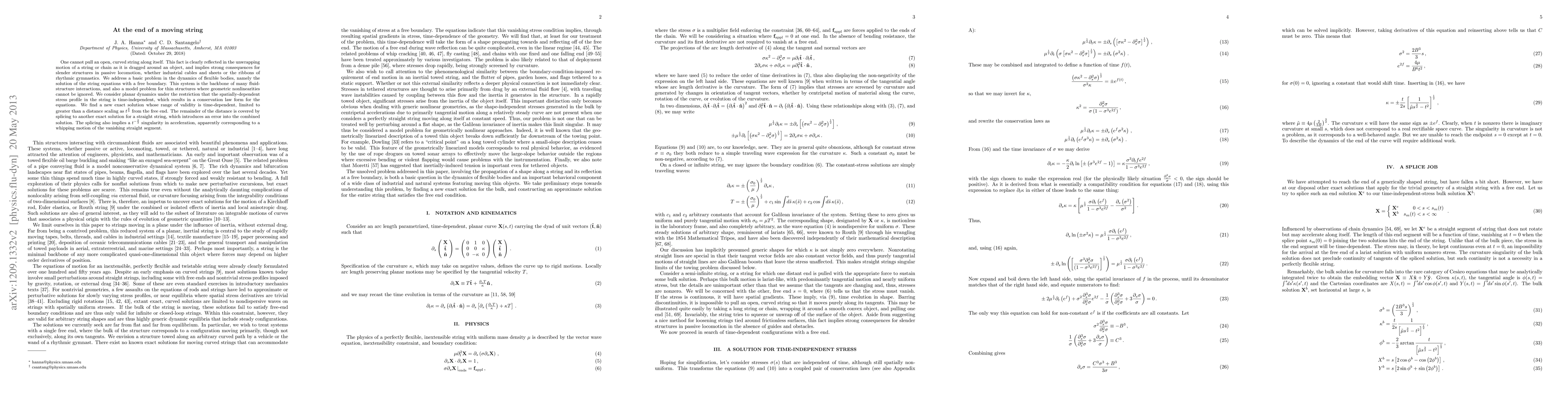 One cannot pull an open, curved string along itself. This fact is clearly reflected in the unwrapping motion of a string or chain as it is dragged around an object, and implies strong consequences for slender structures in passive locomotion, whether industrial cables and sheets or the ribbons of rhythmic gymnastics. We address a basic problem in the dynamics of flexible bodies, namely the solution of the string equations with a free boundary. This system is the backbone of many fluid-structure interactions, and also a model problem for thin structures where geometric nonlinearities cannot be ignored. We consider planar dynamics under the restriction that the spatially-dependent stress profile in the string is time-independent, which results in a conservation law form for the equations. We find a new exact solution whose range of validity is time-dependent, limited to greater than a distance scaling as $t^{\frac4/3}$ from the free end. The remainder of the distance is covered by splicing to another exact solution for a straight string, which introduces an error into the combined solution. The splicing also implies a $t^{-\frac2/3}$ singularity in acceleration, apparently corresponding to a whipping motion of the vanishing straight segment.