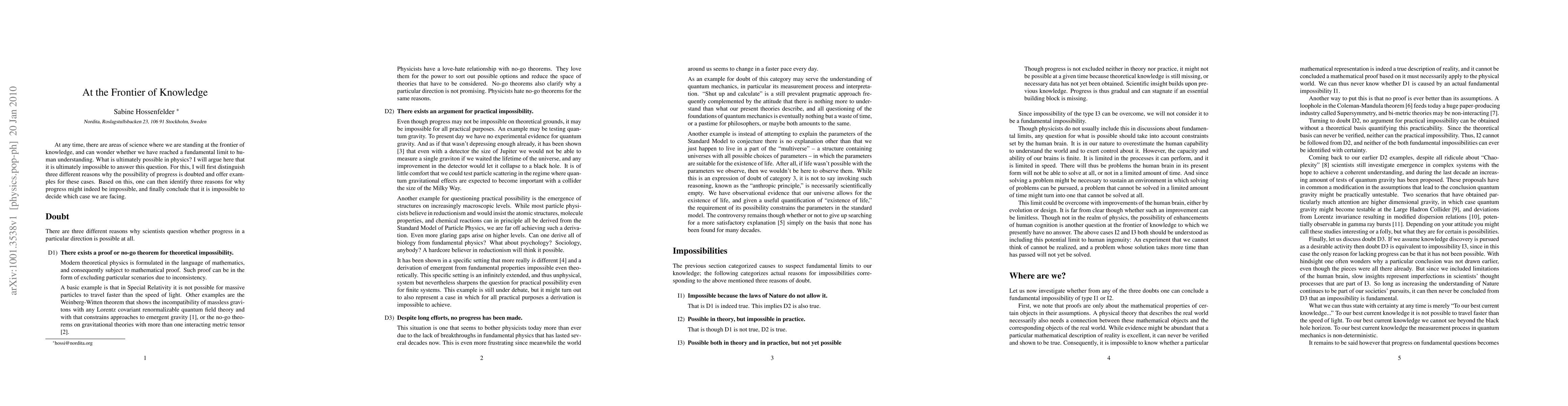 At any time, there are areas of science where we are standing at the frontier of knowledge, and can wonder whether we have reached a fundamental limit to human understanding. What is ultimately possible in physics? I will argue here that it is ultimately impossible to answer this question. For this, I will first distinguish three different reasons why the possibility of progress is doubted and offer examples for these cases. Based on this, one can then identify three reasons for why progress might indeed be impossible, and finally conclude that it is impossible to decide which case we are facing.