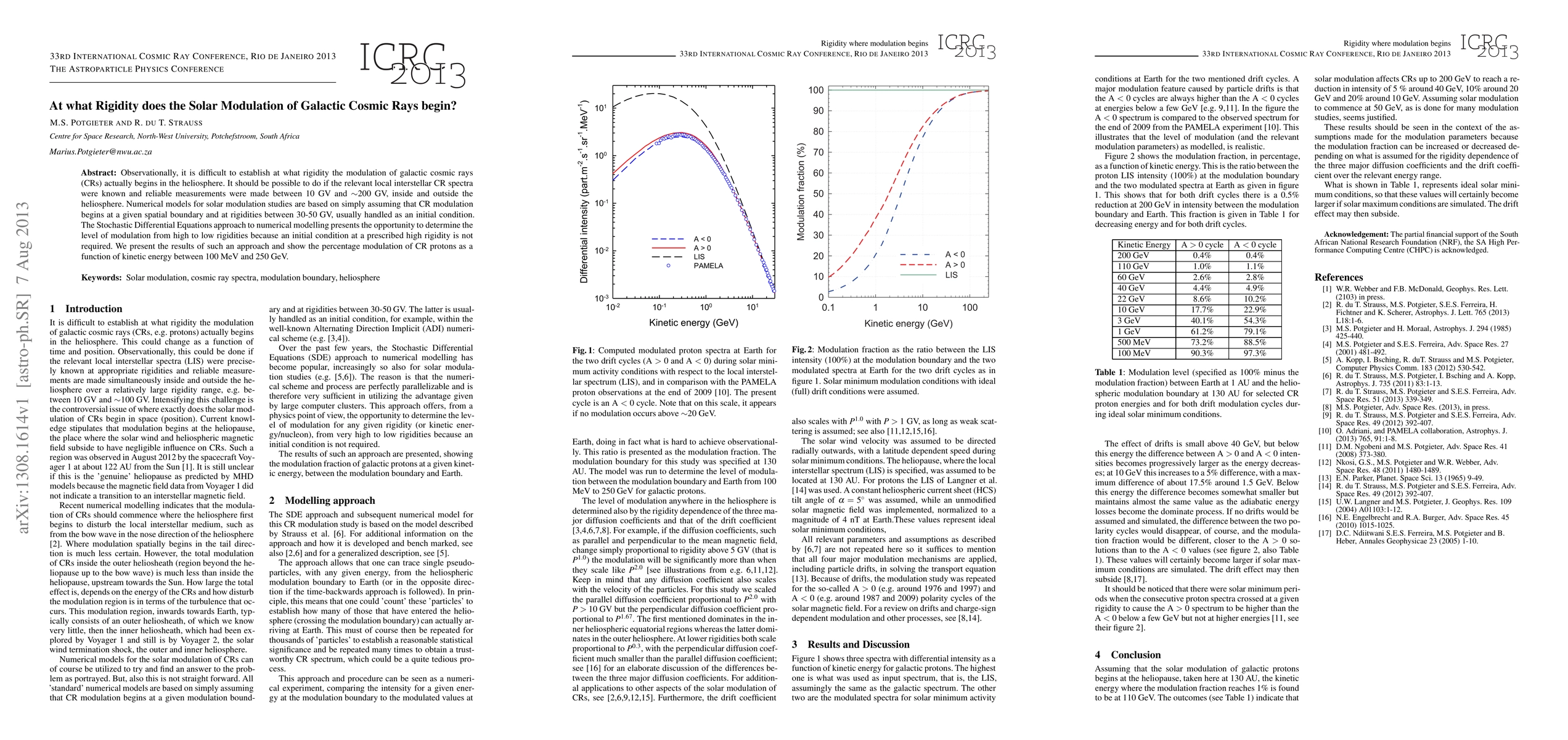 This paper investigates the rigidity at which galactic cosmic rays begin to be modulated by the heliosphere. Using a Stochastic Differential Equations approach, the study determines the modulation percentage of cosmic ray protons across kinetic energies from 100 MeV to 250 GeV, revealing the modulation onset without requiring an initial condition at high rigidity.
