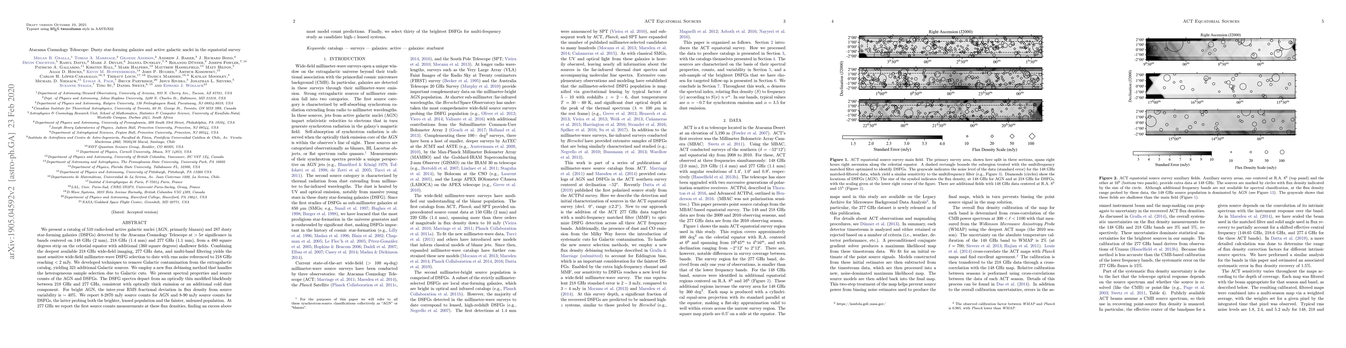 The research utilized data from the Atacama Cosmology Telescope (ACT) to detect and catalog radio-loud active galactic nuclei (AGN) and dusty star-forming galaxies (DSFGs) in a 750 square-degree area on the celestial equator, employing techniques to remove Galactic contamination and debias the sample.