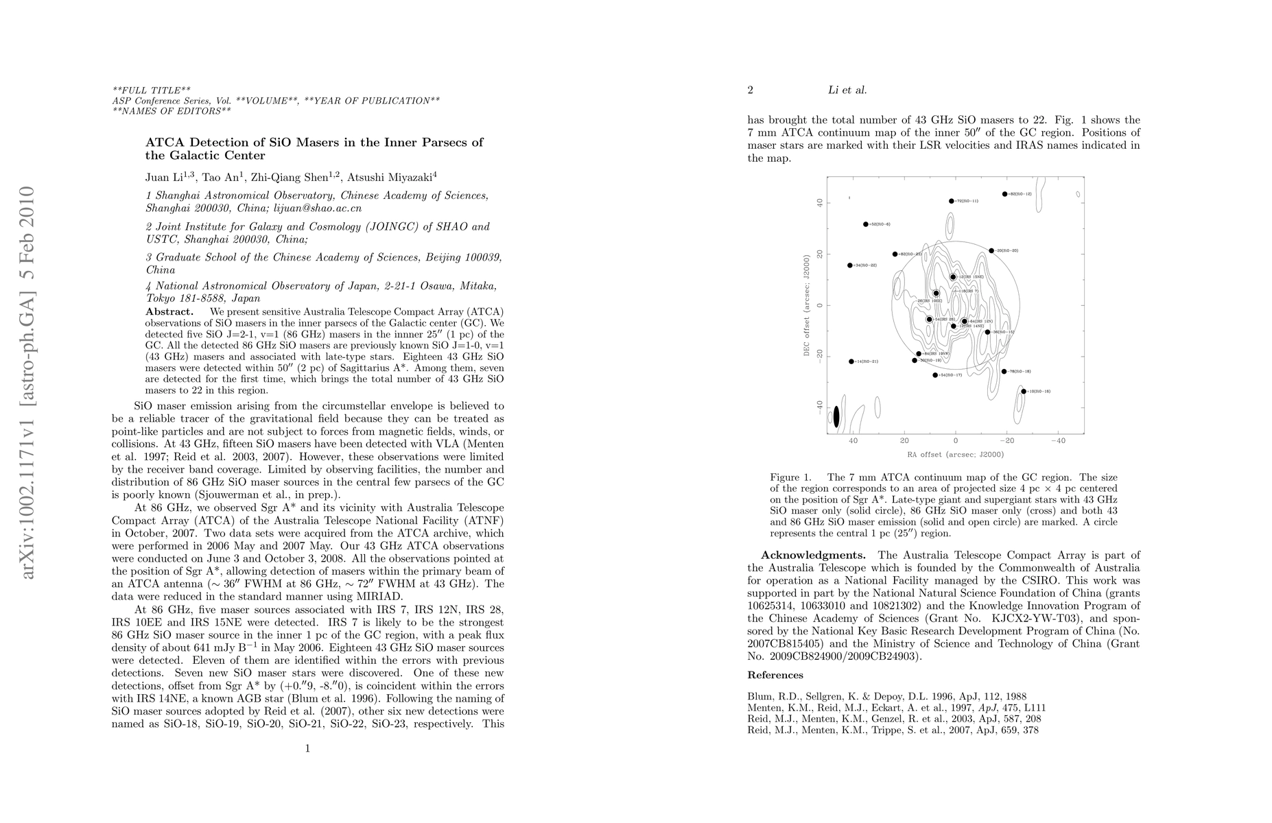 This study reports sensitive ATCA observations detecting five SiO masers in the inner parsecs of the Galactic Center, all previously known 43 GHz SiO masers associated with late-type stars. Additionally, it identifies seven new 43 GHz SiO masers, increasing the total number to 22 within 2 pc of Sagittarius A*.