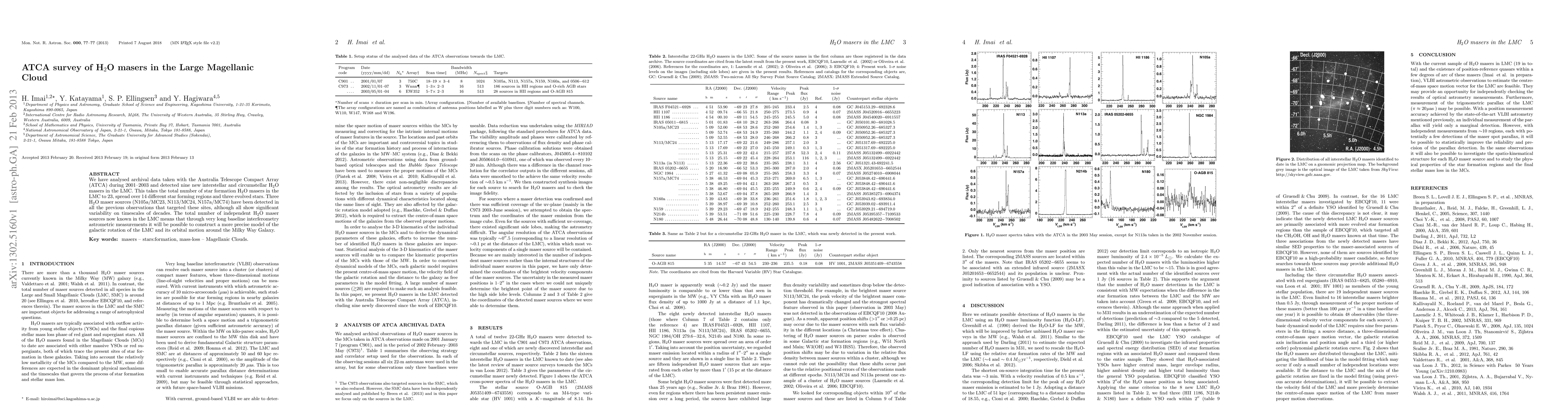We have analysed archival data taken with the Australia Telescope Compact Array (ATCA) during 2001--2003 and detected nine new interstellar and circumstellar water masers in the LMC. This takes the total number of star formation water masers in the LMC to 23, spread over 14 different star forming regions and three evolved stars. Three water maser sources (N105a/MC23, N113/MC24, N157a/MC74) have been detected in all the previous observations that targeted these sites, although all show significant variability on timescales of decades. The total number of independent water maser sources now known in the LMC means that through very long baseline interferometry astrometric measurements it will be possible to construct a more precise model of the galactic rotation of the LMC and its orbital motion around the Milky Way Galaxy.