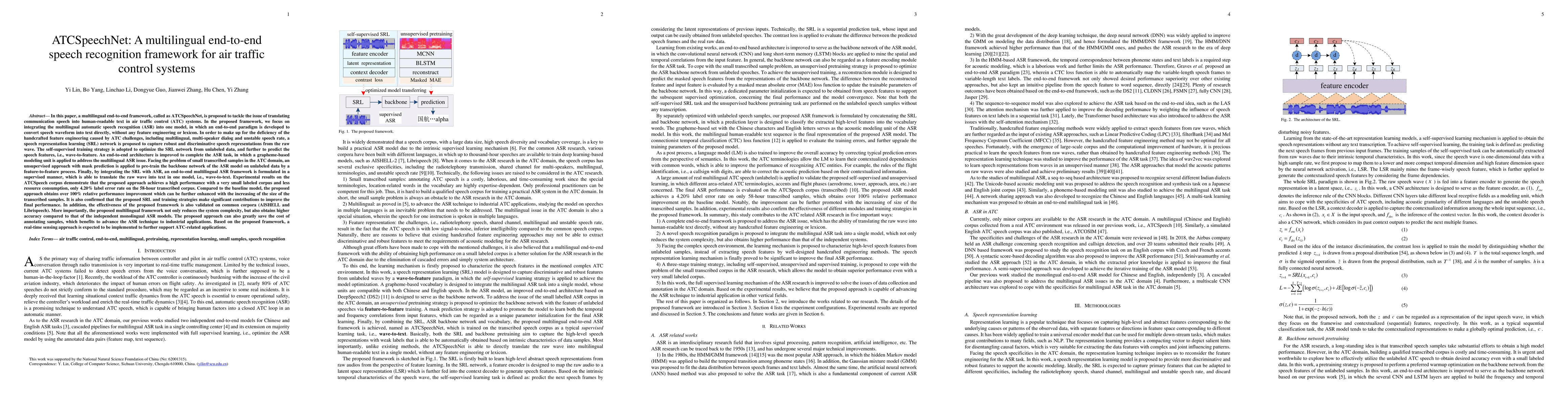 A new framework called ATCSpeechNet is proposed to improve speech recognition in air traffic control systems, achieving a 100% relative performance improvement with minimal labeled data and reduced resource consumption.