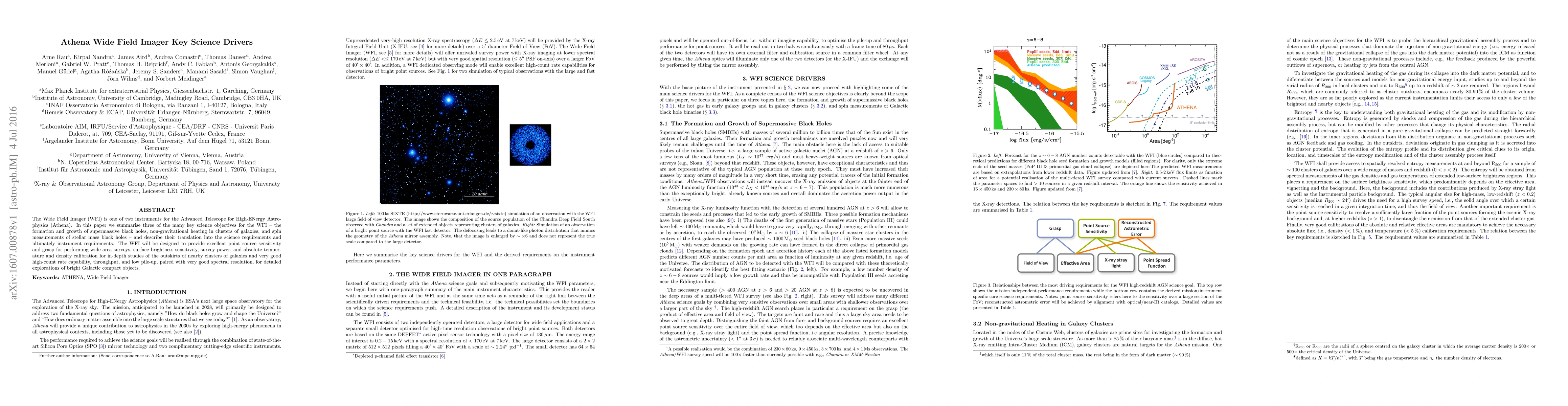 The Wide Field Imager (WFI) is one of two instruments for the Advanced Telescope for High-ENergy Astrophysics (Athena). In this paper we summarise three of the many key science objectives for the WFI - the formation and growth of supermassive black holes, non-gravitational heating in clusters of galaxies, and spin measurements of stellar mass black holes - and describe their translation into the science requirements and ultimately instrument requirements. The WFI will be designed to provide excellent point source sensitivity and grasp for performing wide area surveys, surface brightness sensitivity, survey power, and absolute temperature and density calibration for in-depth studies of the outskirts of nearby clusters of galaxies and very good high-count rate capability, throughput, and low pile-up, paired with very good spectral resolution, for detailed explorations of bright Galactic compact objects.