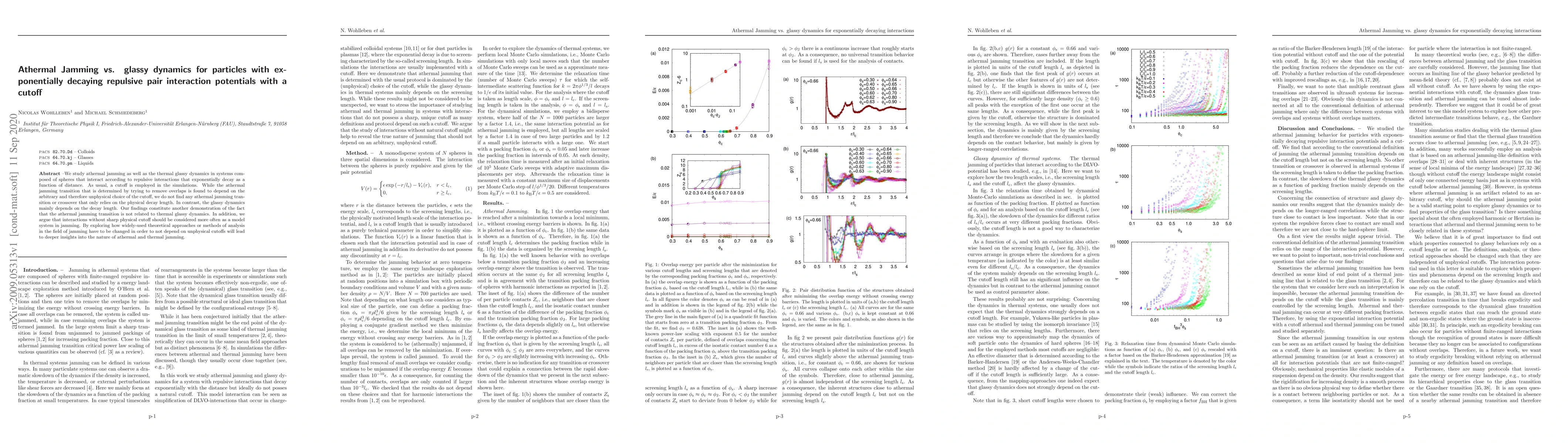 This paper investigates athermal jamming and thermal glassy dynamics in particle systems with exponentially decaying repulsive interactions. It finds that athermal jamming depends on the unphysical cutoff choice, while glassy dynamics primarily depend on the physical decay length, reinforcing the distinction between the two phenomena.
