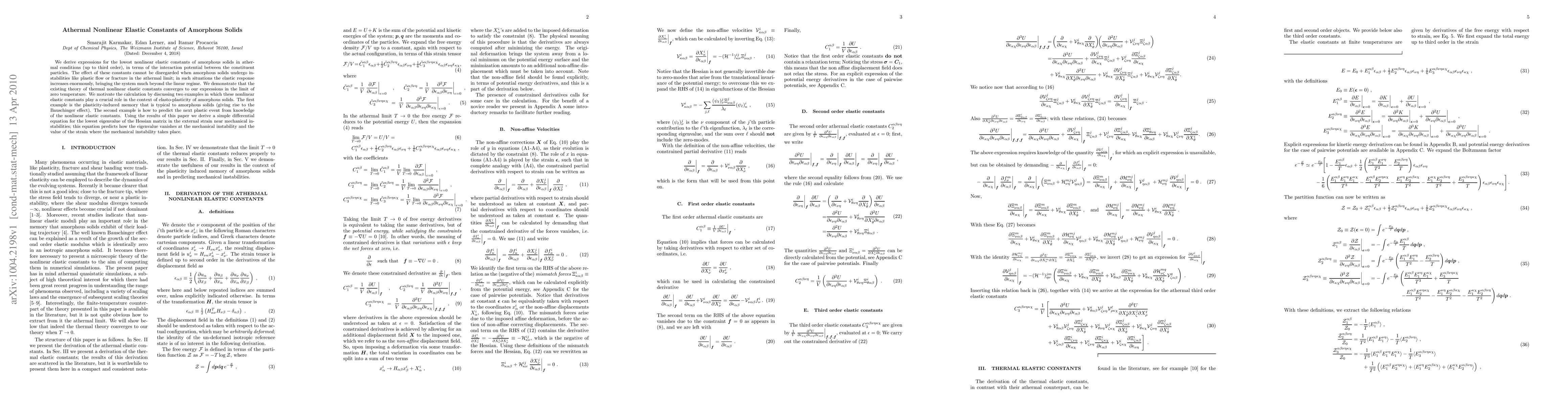 The work extends previous research by providing a comprehensive derivation of nonlinear elastic constants in both thermal and athermal limits, highlighting their importance in understanding athermal behavior of amorphous solids.