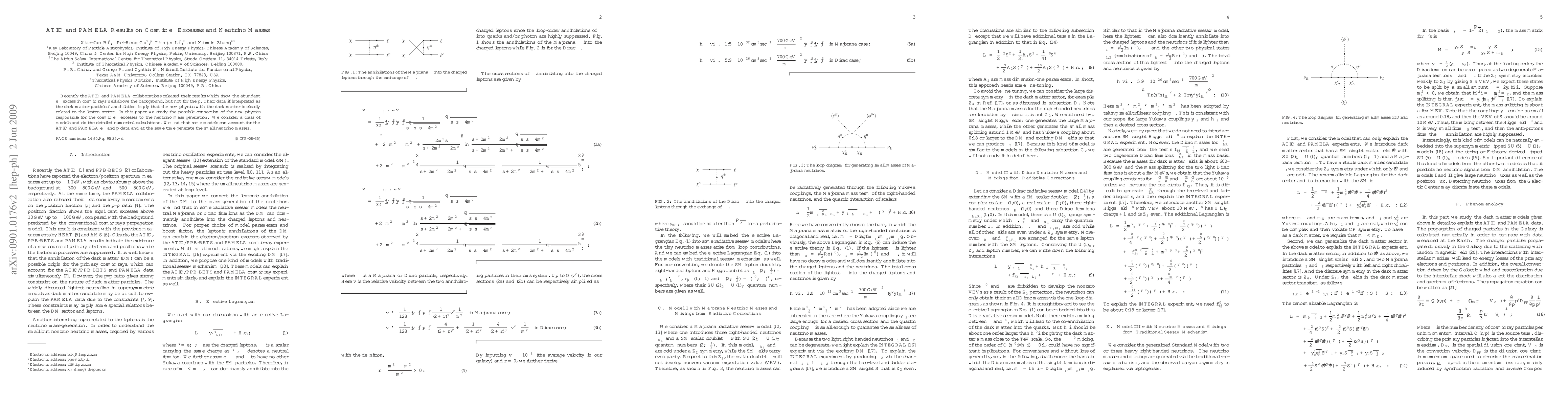 Recently the ATIC and PAMELA collaborations released their results which show the abundant e^\pm excess in cosmic rays well above the background, but not for the \bar{p}. Their data if interpreted as the dark matter particles' annihilation imply that the new physics with the dark matter is closely related to the lepton sector. In this paper we study the possible connection of the new physics responsible for the cosmic e^\pm excesses to the neutrino mass generation. We consider a class of models and do the detailed numerical calculations. We find that these models can natually account for the ATIC and PAMELA e^\pm and \bar{p} data and at the same time generate the small neutrino masses.
