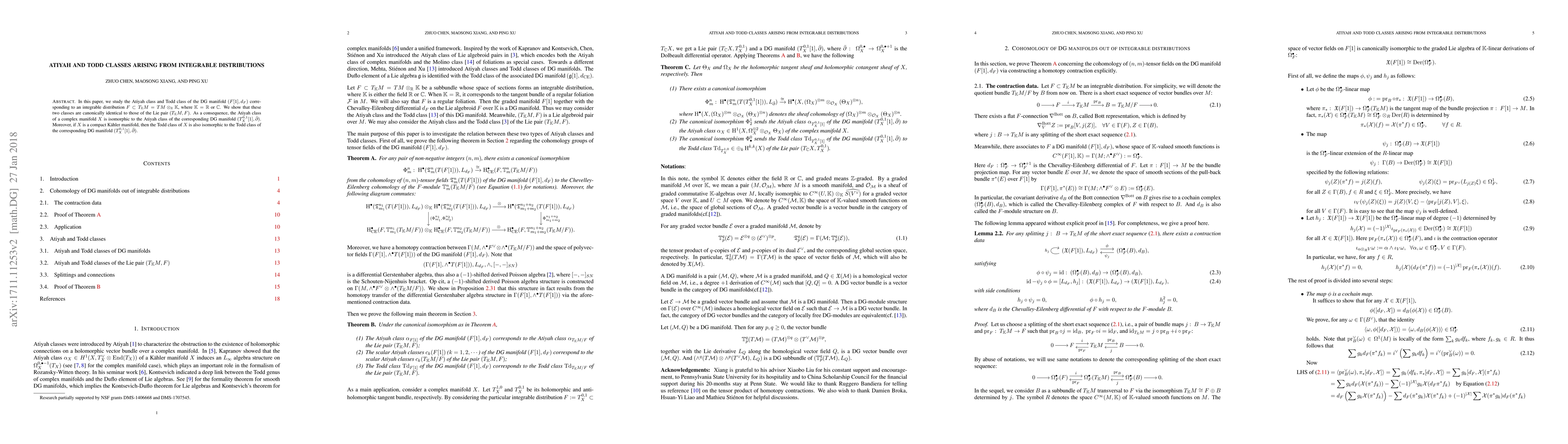 This paper investigates the Atiyah and Todd classes of DG manifolds linked to integrable distributions, demonstrating they correspond to those of the associated Lie pair. It concludes with the isomorphism between the Atiyah classes of complex manifolds and their DG counterparts, and the same for Todd classes in the case of compact Kähler manifolds.