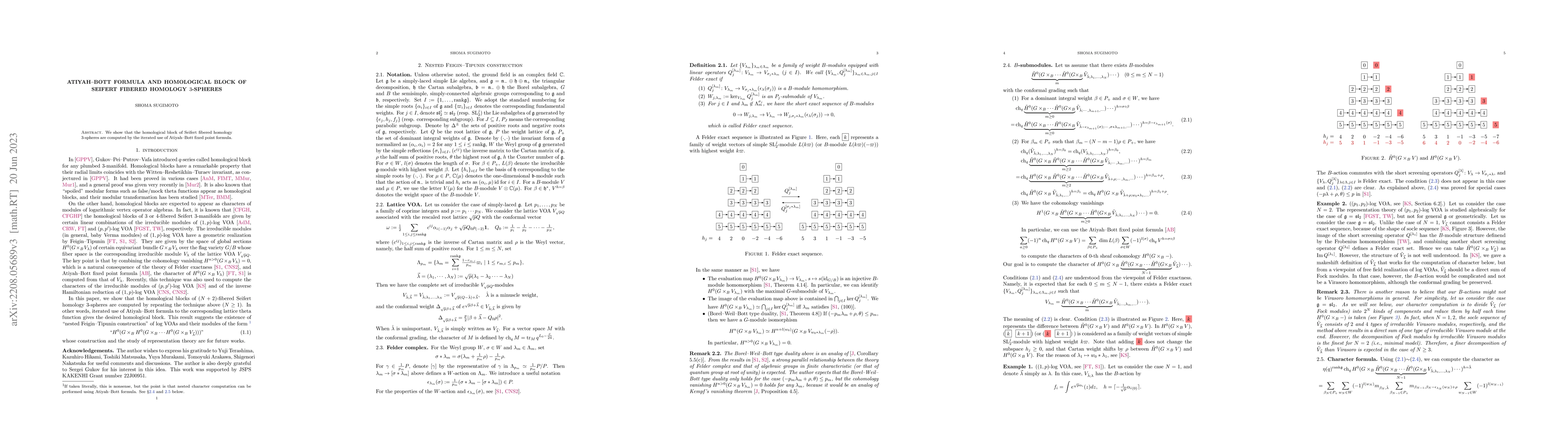 Summary: This paper demonstrates that the homological block of Seifert fibered homology 3-spheres can be computed through repeated application of the Atiyah-Bott fixed point formula. The findings reveal a deep connection between algebraic topology and geometric analysis in low-dimensional manifolds.