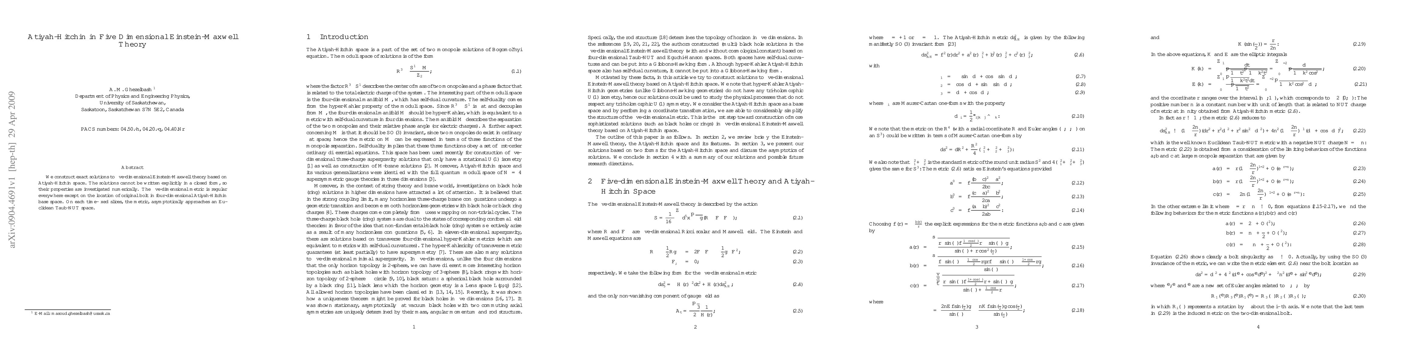 This paper presents exact solutions to five-dimensional Einstein-Maxwell theory derived from Atiyah-Hitchin space, analyzed numerically due to their non-closed form. The solutions are regular everywhere except at the original bolt in the four-dimensional Atiyah-Hitchin base space, and asymptotically approach Euclidean Taub-NUT space on time-fixed slices.