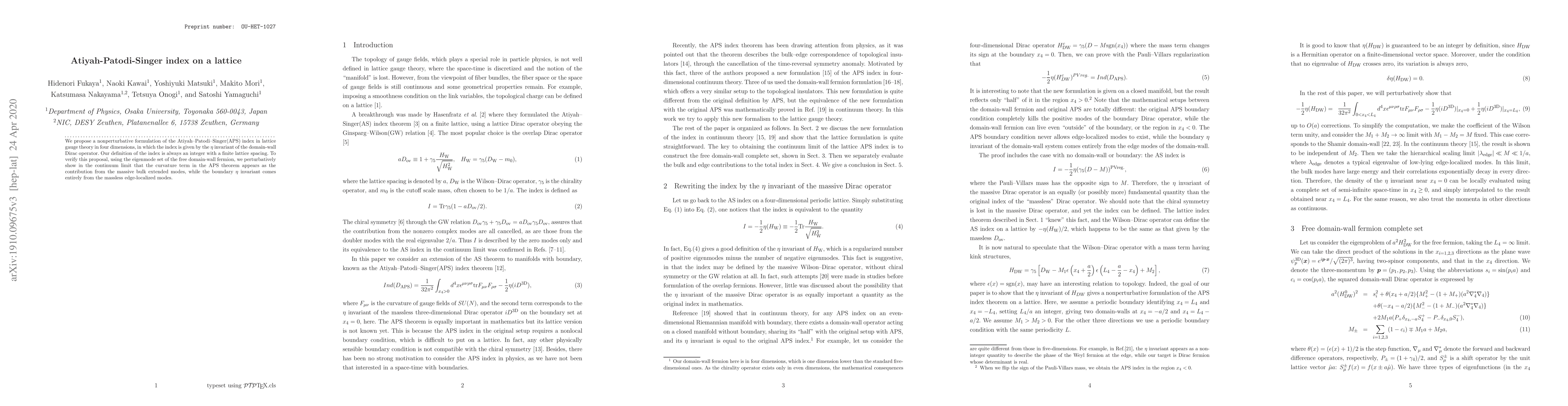 The paper proposes a non-perturbative lattice formulation of the APS index, expressed via the $\eta$ invariant of the domain-wall Dirac operator, and verifies it shows that the continuum limit of the index includes contributions from bulk and edge modes.