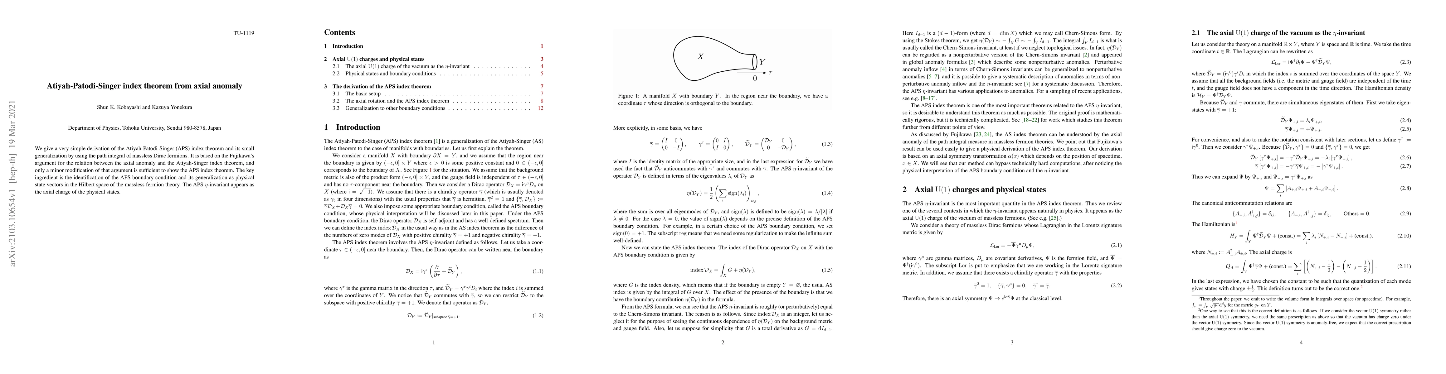 This paper presents a straightforward derivation of the Atiyah-Patodi-Singer index theorem using the path integral of massless Dirac fermions, leveraging Fujikawa's argument for the axial anomaly to connect it to the APS index theorem. The APS η-invariant emerges as the axial charge of physical states.
