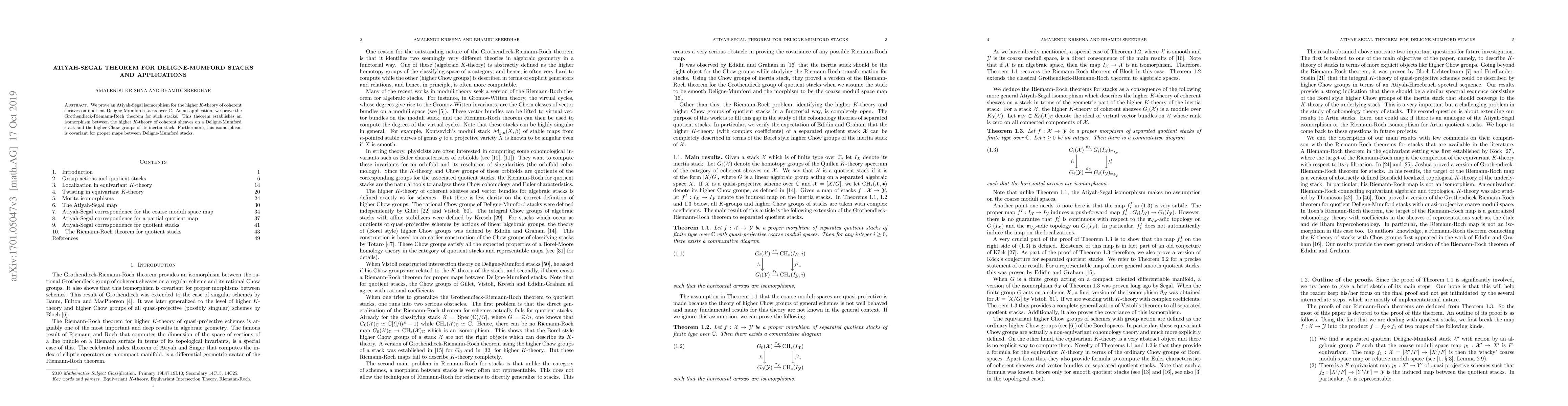 We prove an Atiyah-Segal isomorphism for the higher $K$-theory of coherent sheaves on quotient Deligne-Mumford stacks over $\C$. As an application, we prove the Grothendieck-Riemann-Roch theorem for such stacks. This theorem establishes an isomorphism between the higher $K$-theory of coherent sheaves on a Deligne-Mumford stack and the higher Chow groups of its inertia stack. Furthermore, this isomorphism is covariant for proper maps between Deligne-Mumford stacks.