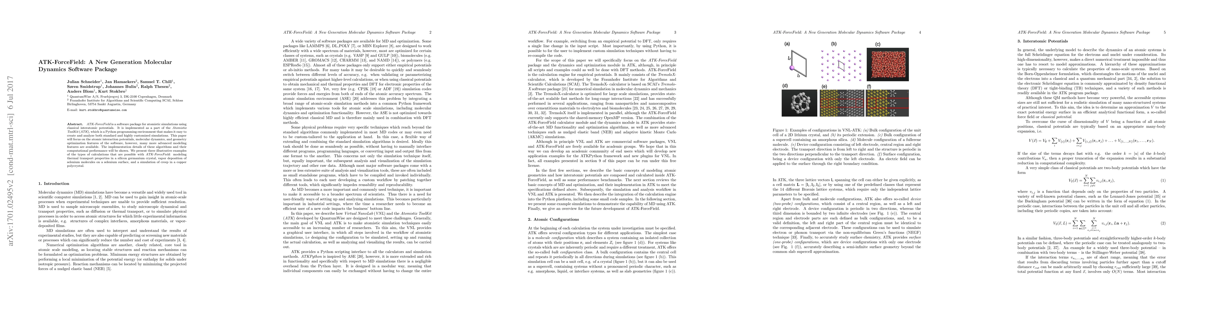 ATK-ForceField is a software package for atomistic simulations using classical interatomic potentials. It is implemented as a part of the Atomistix ToolKit (ATK), which is a Python programming environment that makes it easy to create and analyze both standard and highly customized simulations. This paper will focus on the atomic interaction potentials, molecular dynamics, and geometry optimization features of the software, however, many more advanced modeling features are available. The implementation details of these algorithms and their computational performance will be shown. We present three illustrative examples of the types of calculations that are possible with ATK-ForceField: modeling thermal transport properties in a silicon germanium crystal, vapor deposition of selenium molecules on a selenium surface, and a simulation of creep in a copper polycrystal.