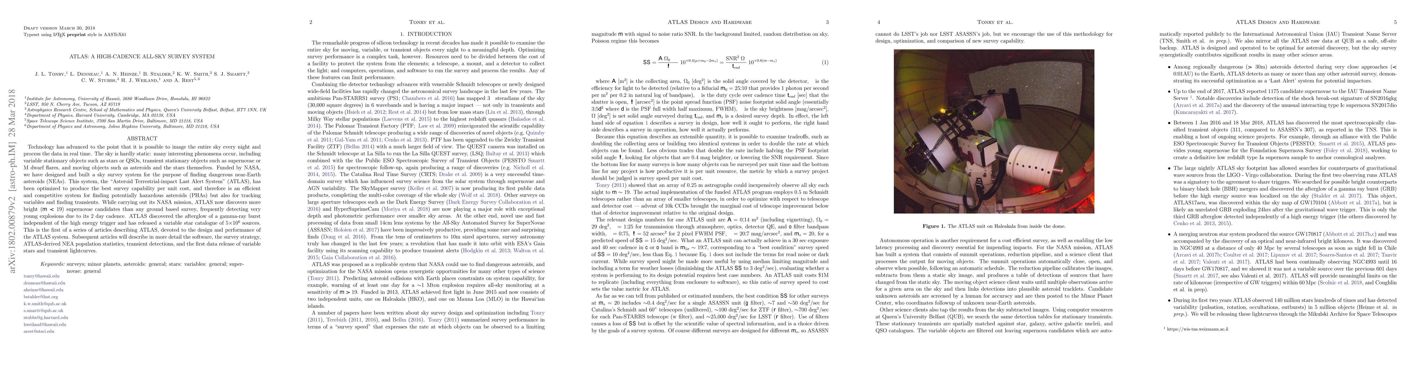 ATLAS is a high-cadence all-sky survey system designed to efficiently detect near-Earth asteroids (NEAs) and potentially hazardous asteroids (PHAs) at a competitive cost. It also excels in discovering variable stars, transient objects like supernovae, and the afterglow of gamma-ray bursts, thanks to its rapid 2-day imaging cadence.