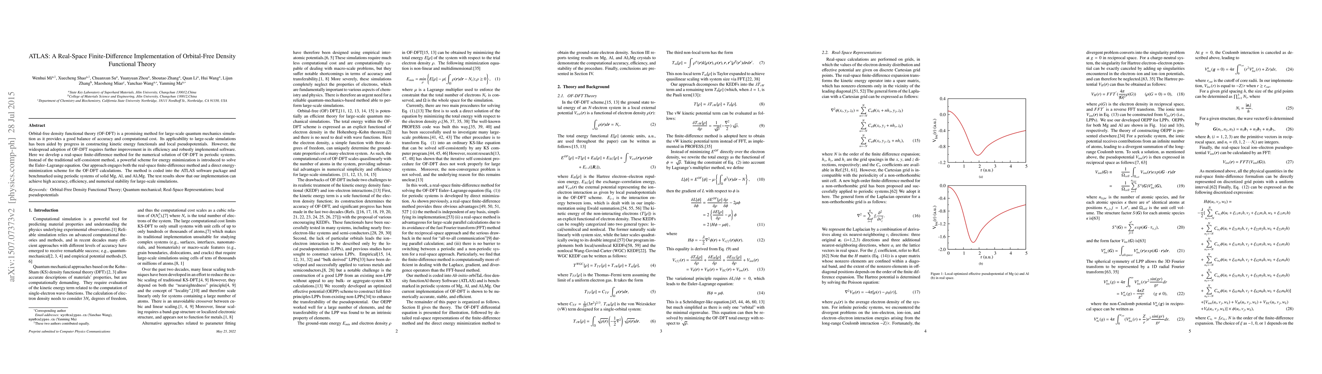 ATLAS presents a real-space finite-difference implementation for orbital-free density functional theory (OF-DFT), employing an energy minimization scheme for enhanced efficiency and stability. Benchmarked on Mg, Al, and Al$_{3}$Mg, it demonstrates high accuracy and computational efficiency for large-scale simulations.