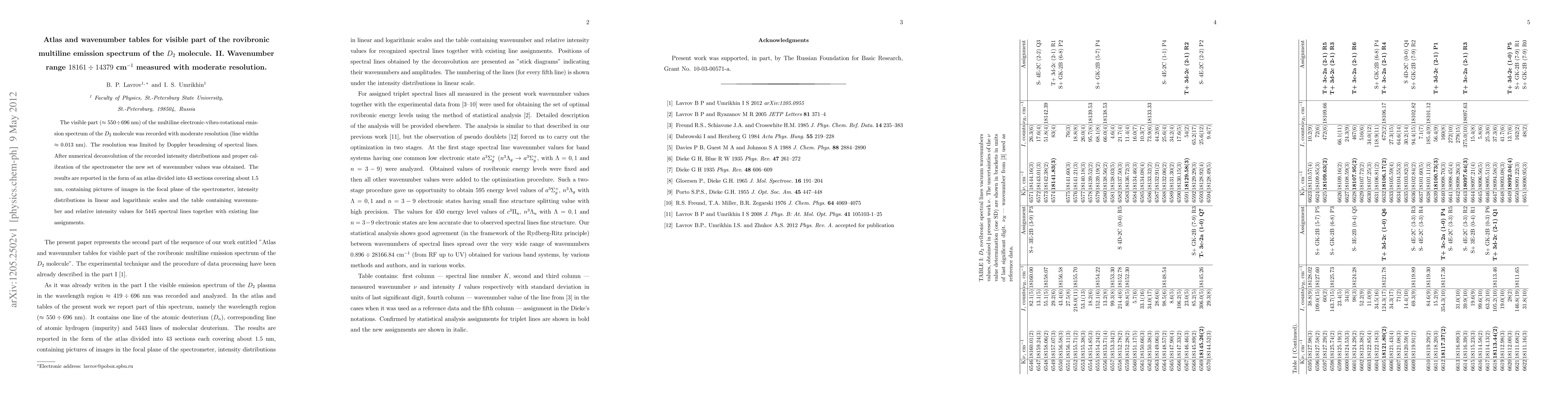 The paper presents an advanced method for obtaining precise wavenumber values in the visible part of the $D_2$ molecule's emission spectrum using moderate resolution spectroscopy and subsequent data processing techniques.
