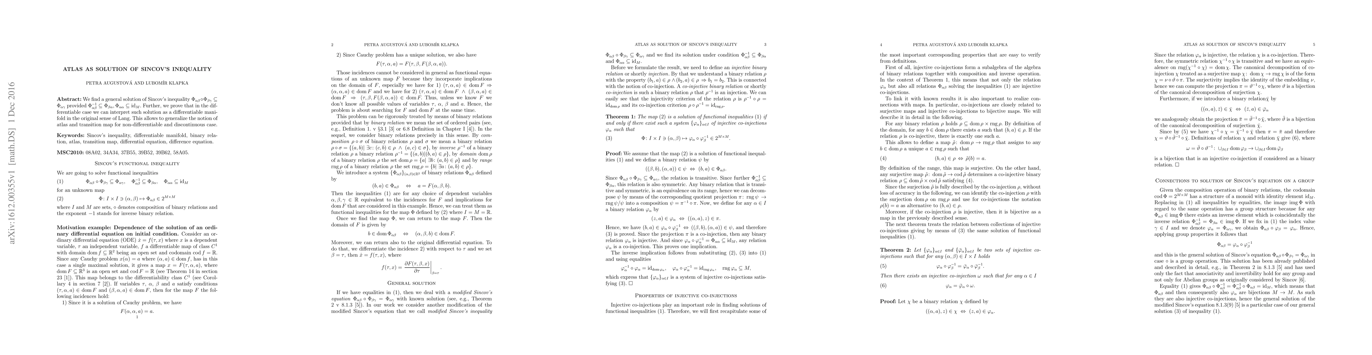 We find a solution of Sincov's inequality. Further, we prove that in the differentiable case we can interpret such solution as a differentiable manifold in the original sense of Lang. This allows to generalize the notion of atlas and transition map for non-differentiable and discontinuous case.