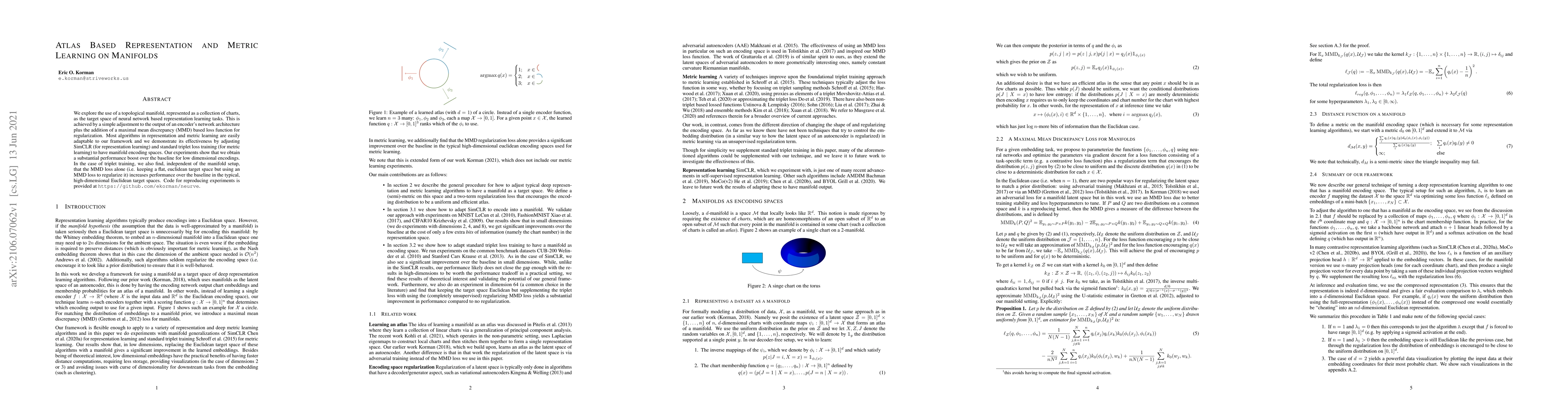 We explore the use of a topological manifold, represented as a collection of charts, as the target space of neural network based representation learning tasks. This is achieved by a simple adjustment to the output of an encoder's network architecture plus the addition of a maximal mean discrepancy (MMD) based loss function for regularization. Most algorithms in representation and metric learning are easily adaptable to our framework and we demonstrate its effectiveness by adjusting SimCLR (for representation learning) and standard triplet loss training (for metric learning) to have manifold encoding spaces. Our experiments show that we obtain a substantial performance boost over the baseline for low dimensional encodings. In the case of triplet training, we also find, independent of the manifold setup, that the MMD loss alone (i.e. keeping a flat, euclidean target space but using an MMD loss to regularize it) increases performance over the baseline in the typical, high-dimensional Euclidean target spaces. Code for reproducing experiments is provided at https://github.com/ekorman/neurve .