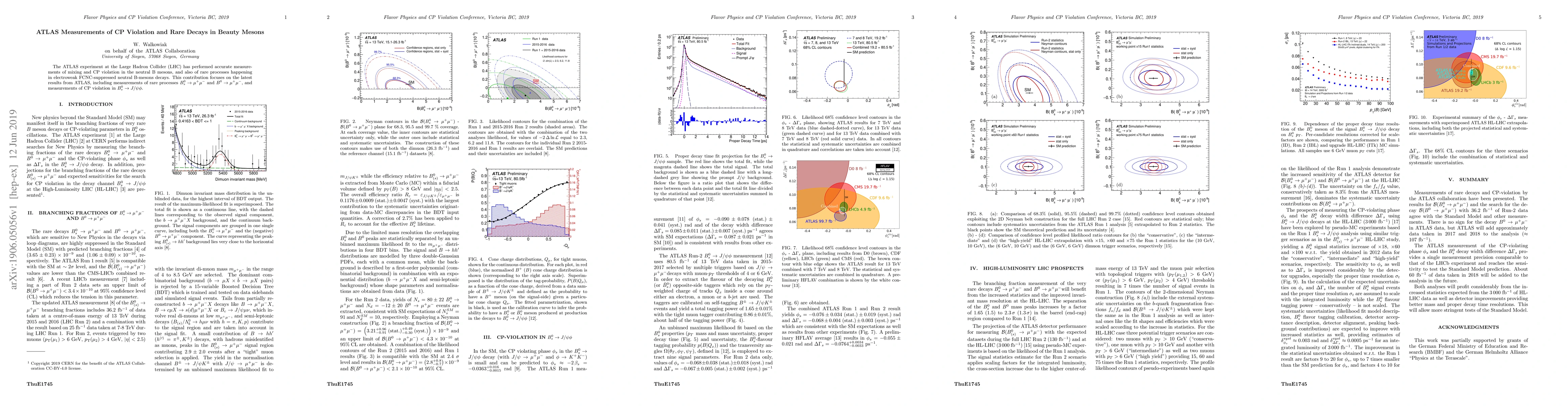 The ATLAS experiment at the LHC has precisely measured CP violation and rare decays in neutral B mesons, including $B^0_s \to \mu^+\mu^-$ and $B^0 \to \mu^+\mu^-$ processes, and CP violation in $B^0_s \to J/\psi\phi$. These findings provide crucial insights into the Standard Model and potential new physics.