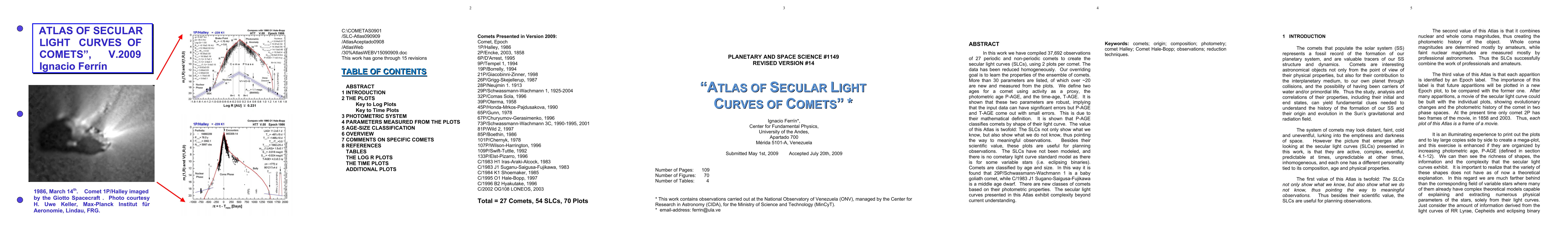 The Atlas of Secular Light Curves (SLCs) provides a comprehensive collection of light curve data for various comets, enabling comparative studies and classification based on photometric properties.